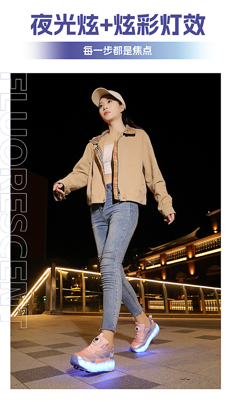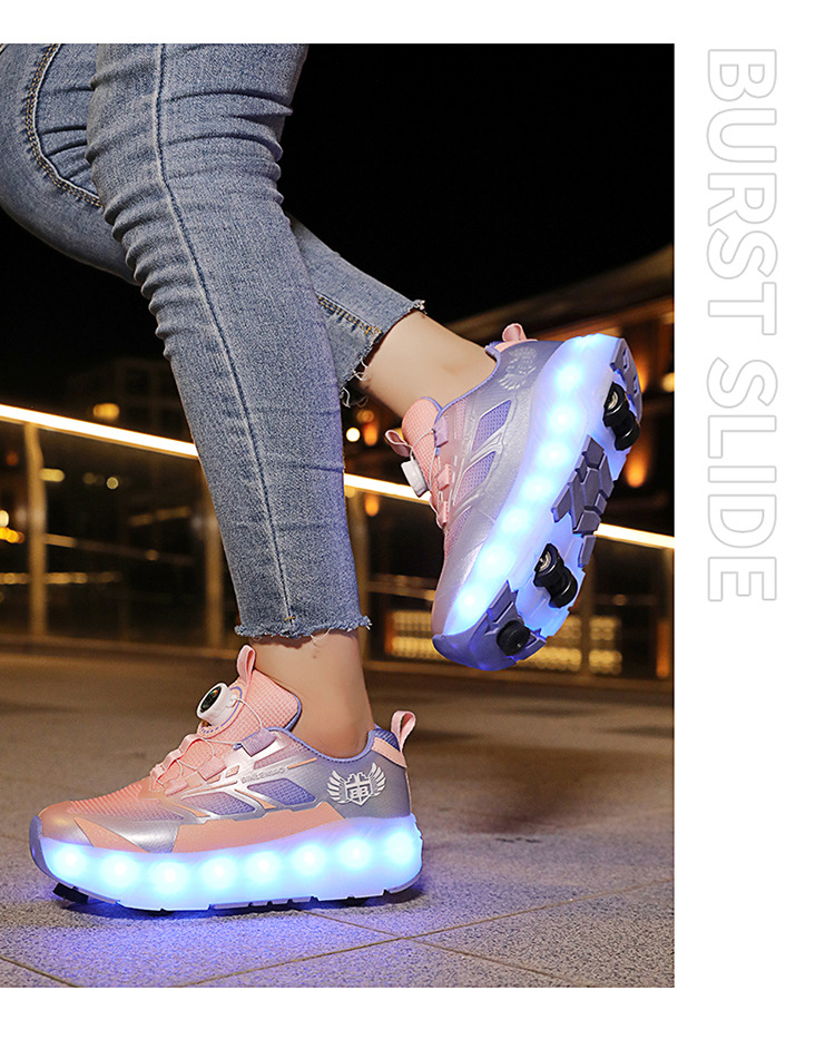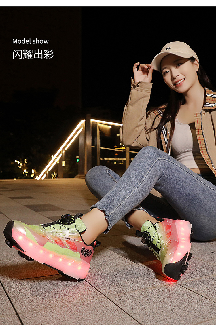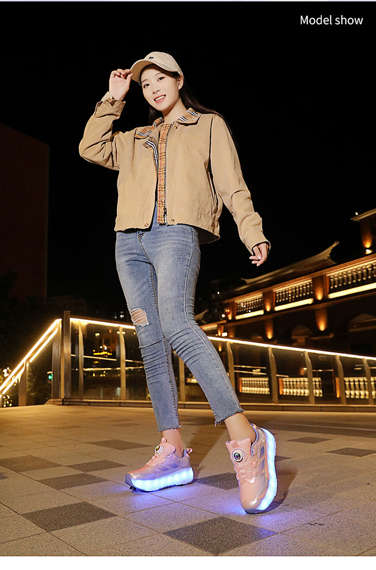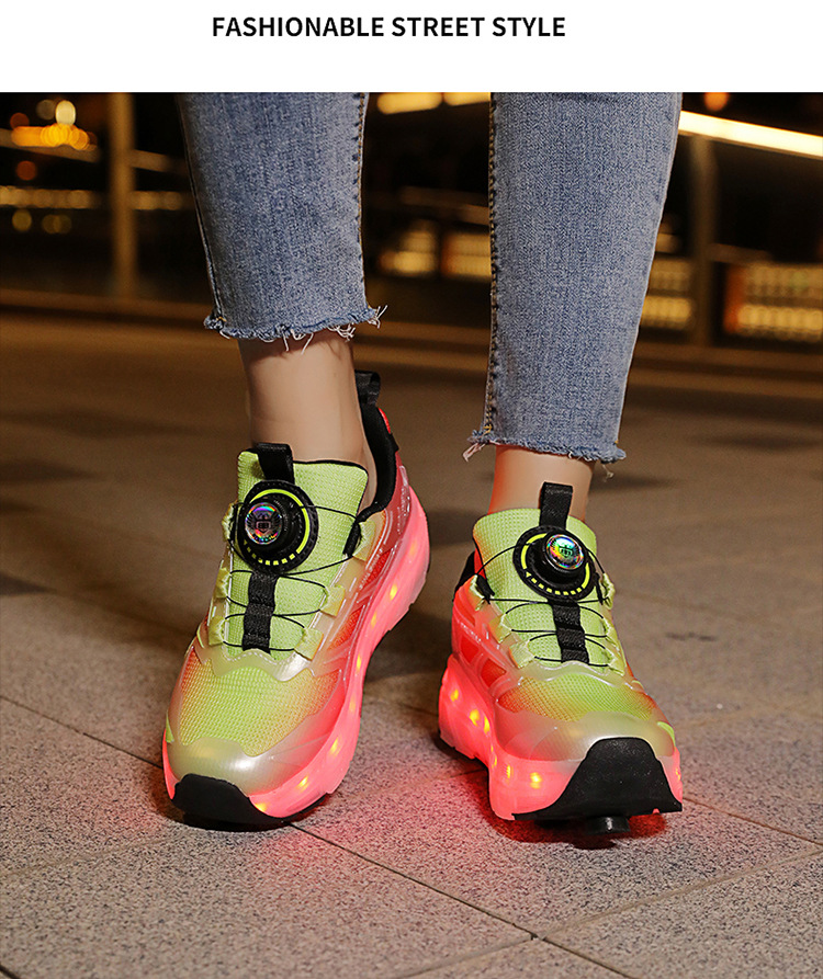 Прямые продажи с фабрики детские хили с четырьмя колесами и тормозом, съемные роликовые туфли для мальчиков с зарядкой и мигающими огнями для девочек и взрослых