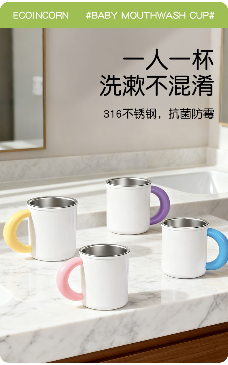 Новый детский стакан для полоскания рта и чистки зубов из нержавеющей стали 316, маркированный, молочный стакан, простой дизайн, подарок, высокий внешний вид