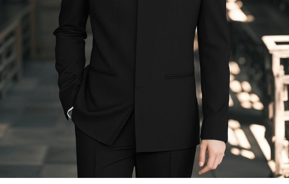 Новый китайский стиль осенне-зимний костюм с стойким воротником для мужчин, свадебный и обручальный костюм с скрытой пуговицей, приталенный костюм Чжуншань