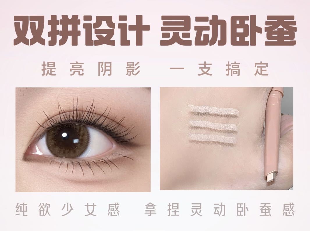 Красивый двуцветный карандаш-шелкопряд, натуральный, долго держится, легко наносится, осветляет и подчеркивает тени, двусторонний