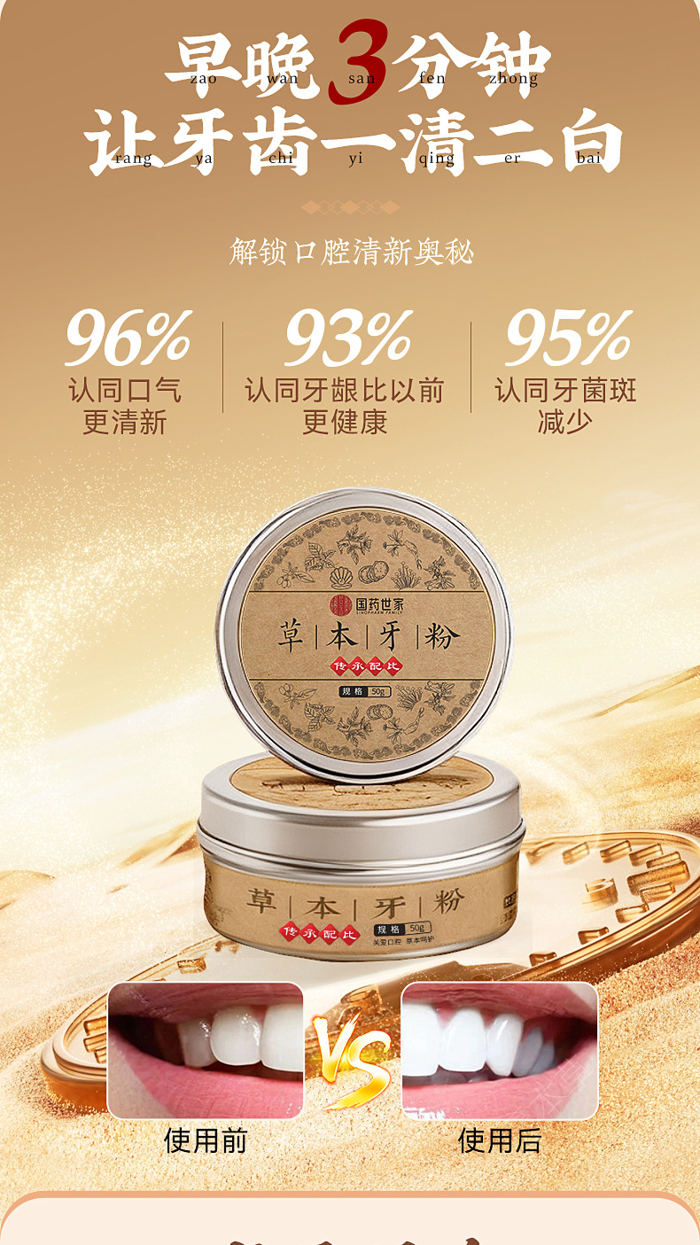 Травяная зубная пудра, популярная модель декабря, чистая китайская зубная пудра, мягкий уход за зубами, удаление зубного налета