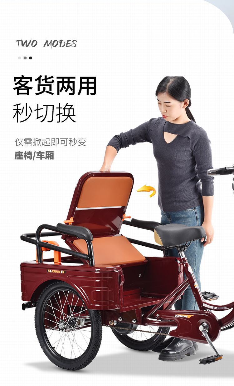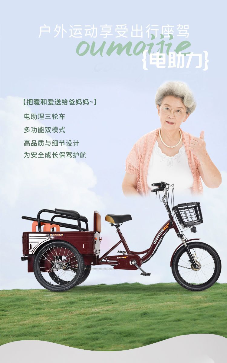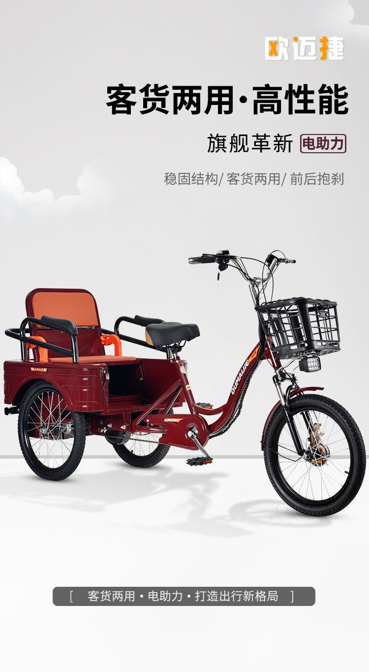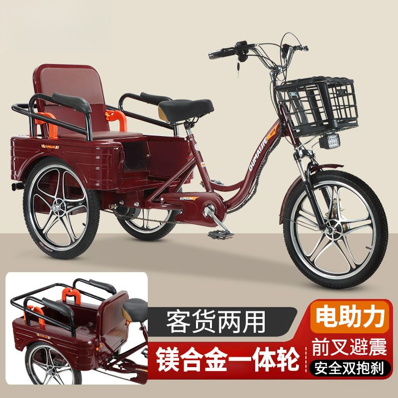 Электрический скутер с педальным приводом для пожилых, легкий трехколесный велосипед для пассажиров и грузов