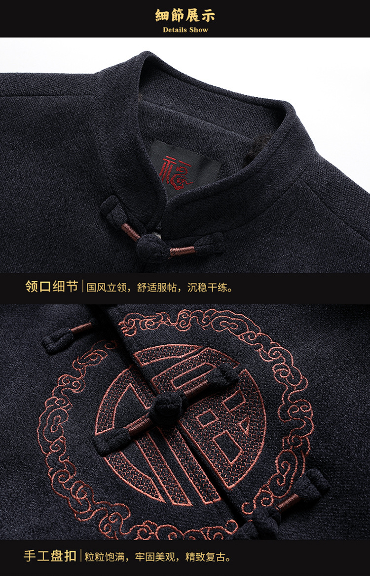 Номер товара 1460 woolen coat plus velvet chest round blessing flap pocket pants round blessing