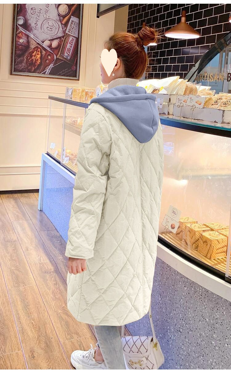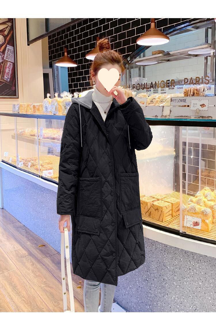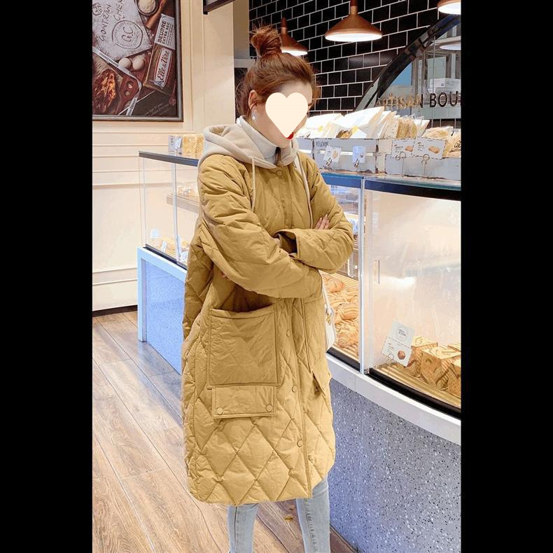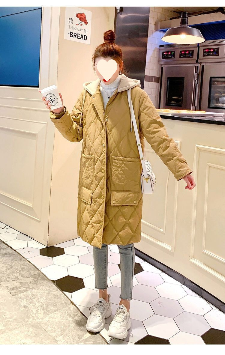 Новая зимняя куртка 2025 года, утепленная, универсальная, до колен, средней длины, с капюшоном, в клетку, свободного кроя для женщин