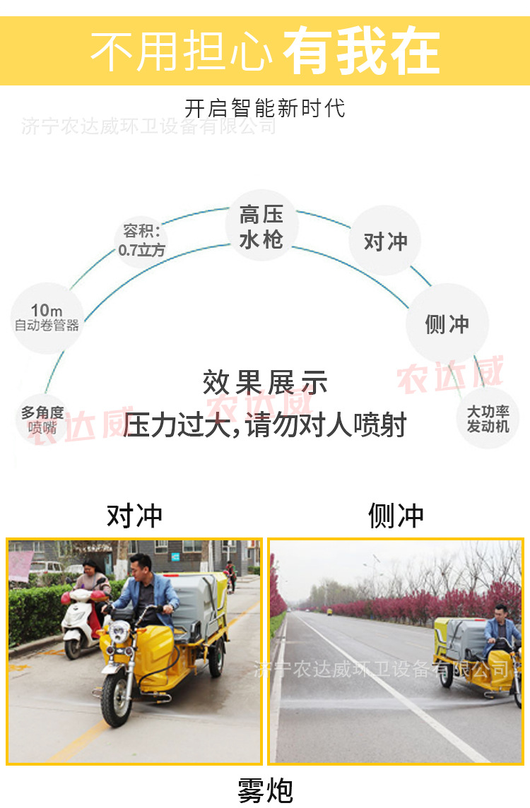 Малый электрический трехколесный высоконапорный очистной автомобиль, многофункциональный мойщик для санитарной очистки улиц в жилых районах нового поколения