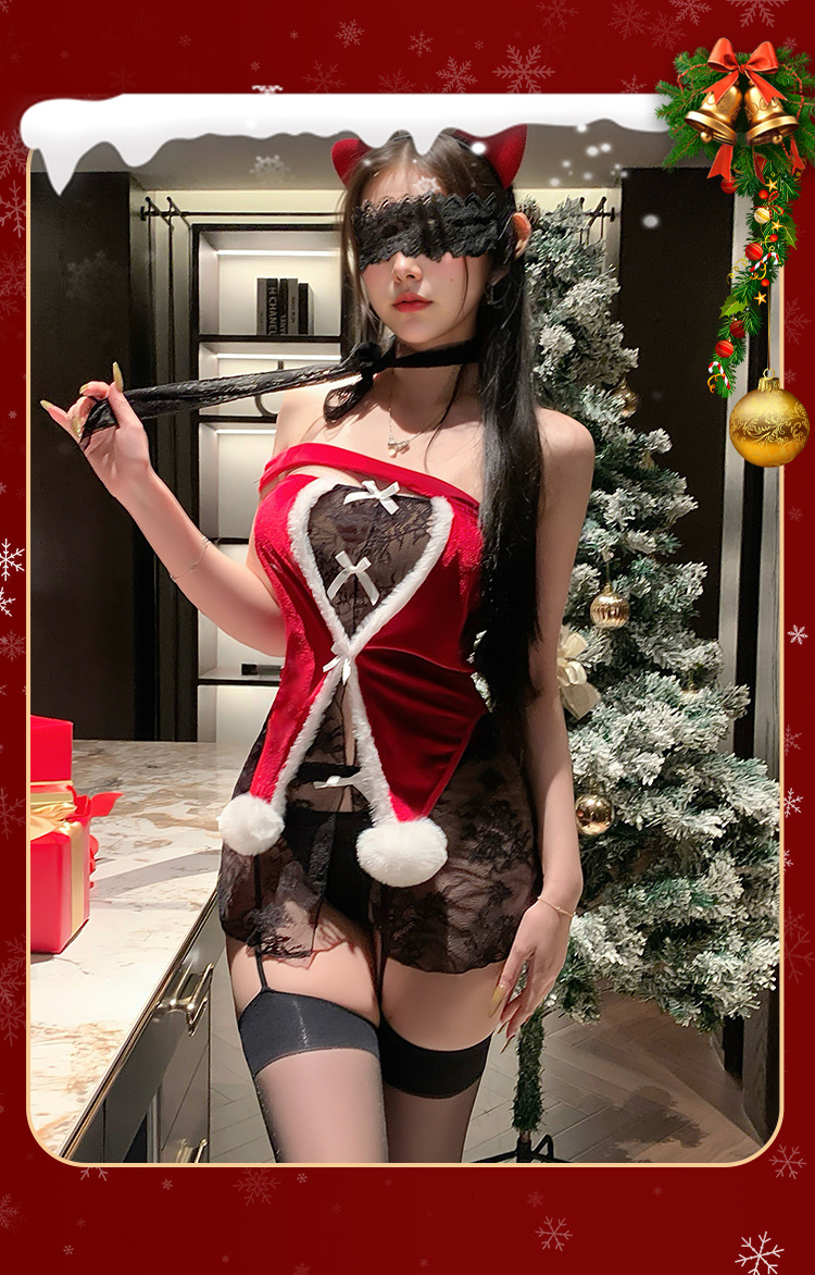 Серия рождественских униформ Tidal Party Pure Desire сексуальный топ без рукавов, прозрачный наряд для свидания, эротическое нижнее белье, не нужно снимать
