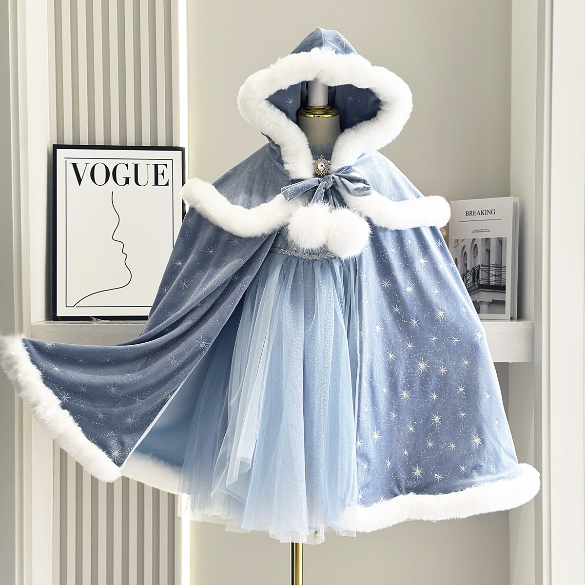 Плащ-Шаль Принцессы Эльзы 2025 Зимний Новый Плащ для маленькой девочки на день рождения Выход