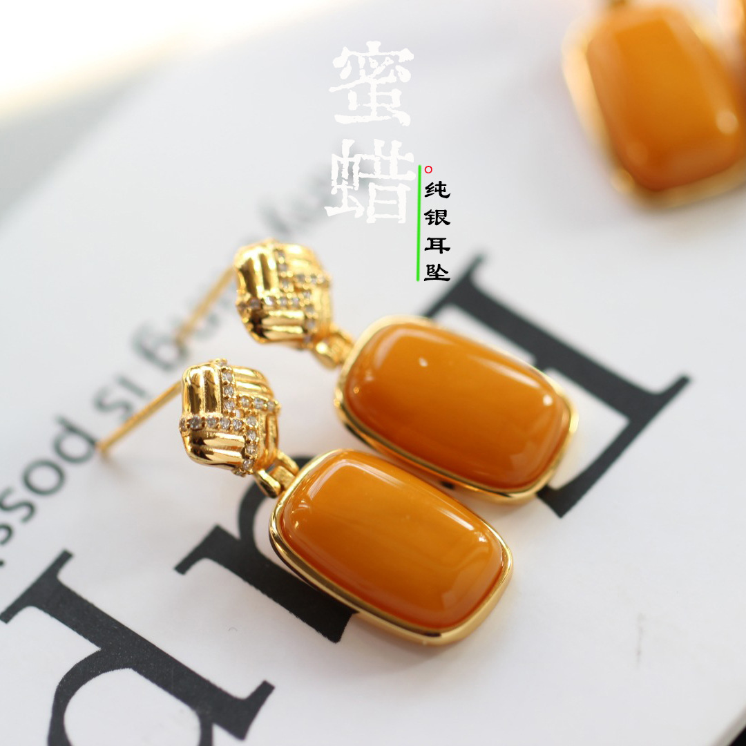 натуральные желтые серьги из пчелиного воска в форме тыквы инкрустированные серебром S925 готовые к продаже оптовые новые китайские серьги