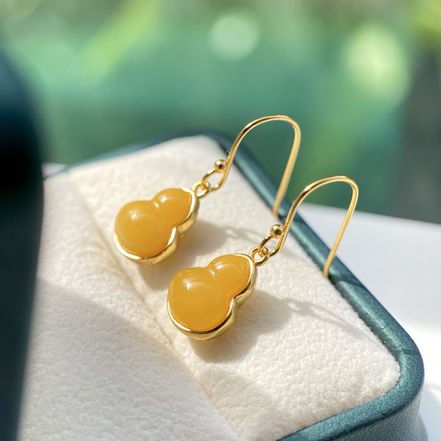 Название продукта Natural chicken fat yellow beeswax gourd earrings