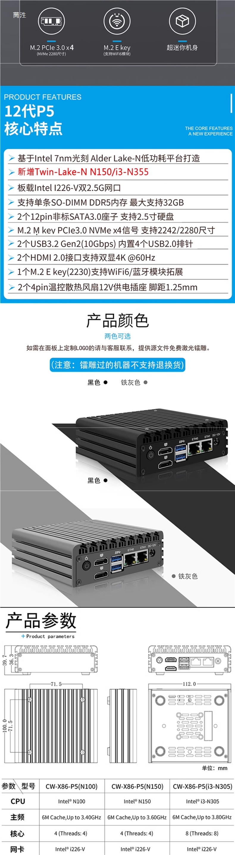 Changwang P5/P6 N100/N150/N355 двойной сетевой порт 2.5g D5 Nvme мягкая маршрутизация Qnas хост