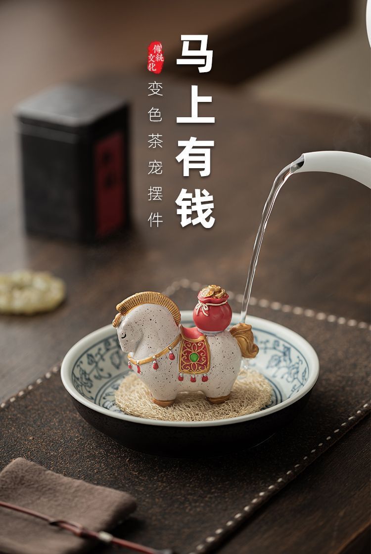 Чайные фигурки, меняющие цвет, китайский стиль, приносящий удачу, фигурка танцующего коня для чайного стола, аксессуары для чайного набора и подноса, высококачественные чайные фигурки