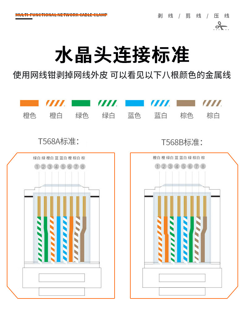 Одноразовые плоскогубцы для сетевого кабеля Jinghua 210B, многофункциональные плоскогубцы для обжима и снятия изоляции