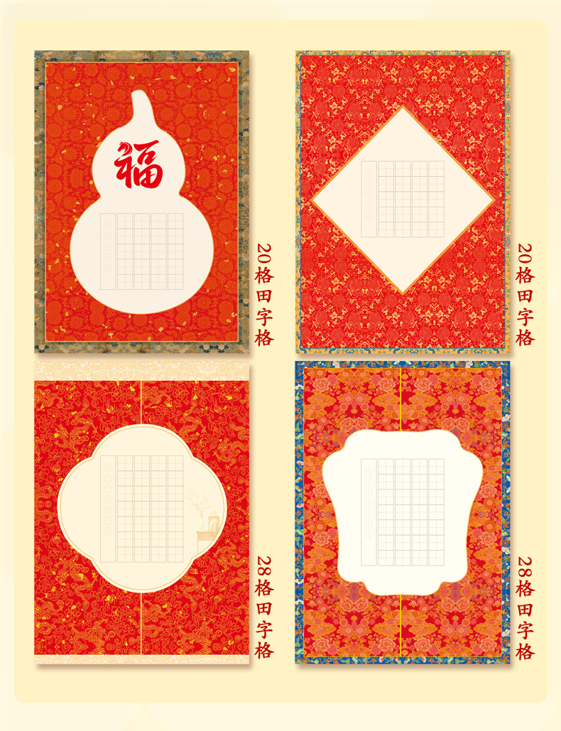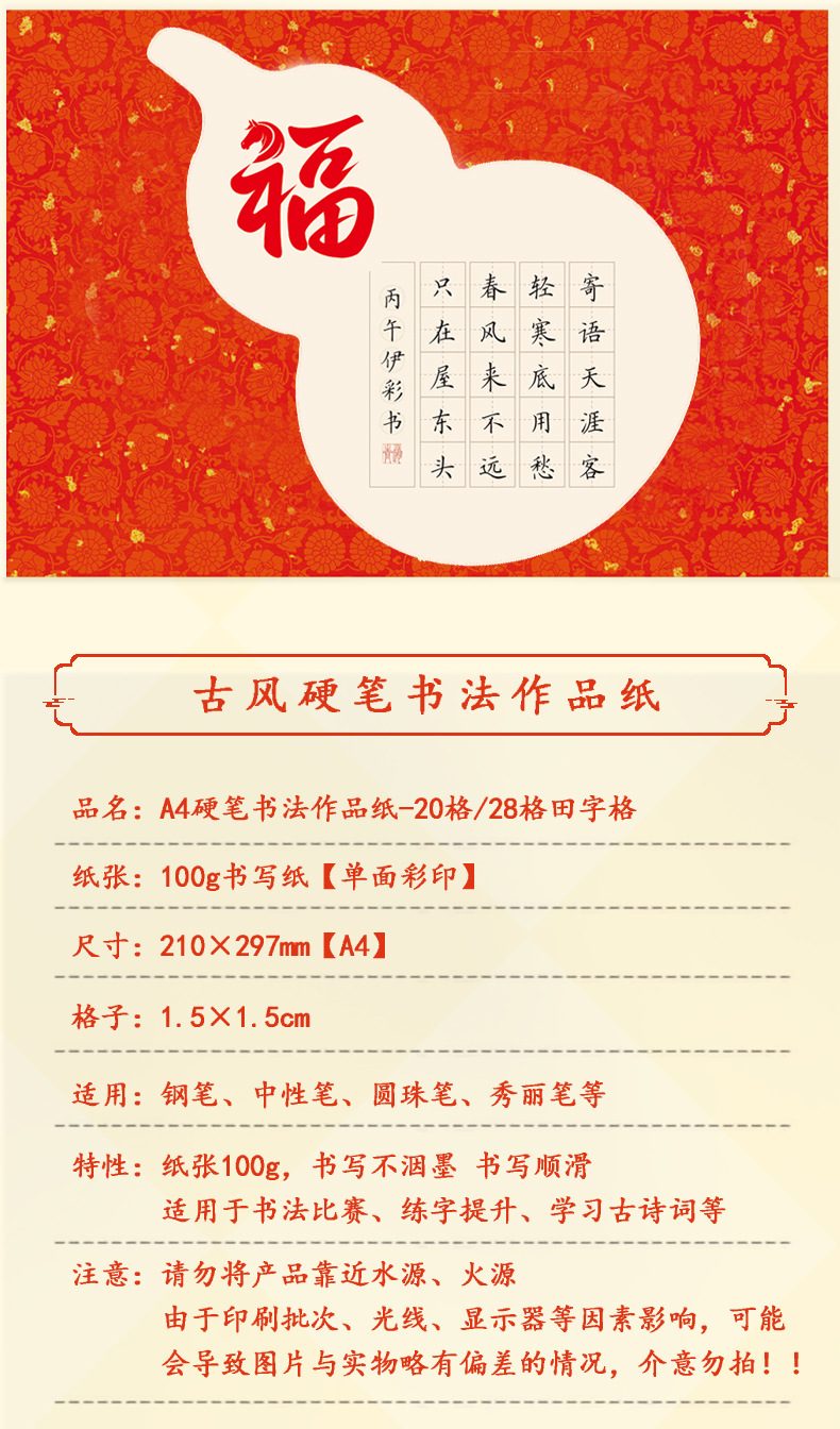 Новогодняя стандартная бумага для каллиграфии A4 с жесткой ручкой, клетка для работ, древние стихи из пяти-семи символов, праздничные благословения, практика каллиграфии