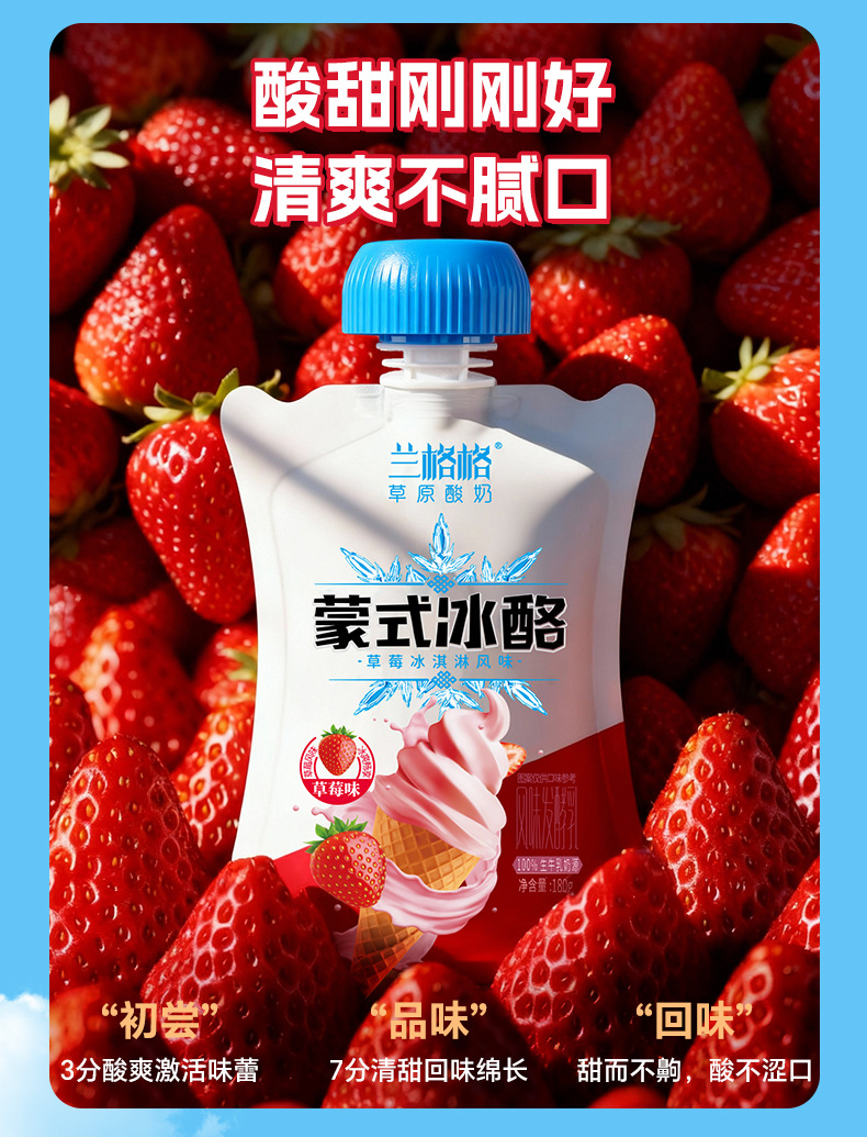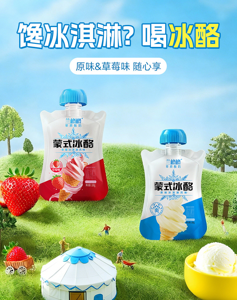Мороженое в монгольском стиле клубничное 180*6 пакетов + мороженое в монгольском стиле 180*6 пакетов низкотемпературный йогурт весь ящик оптом