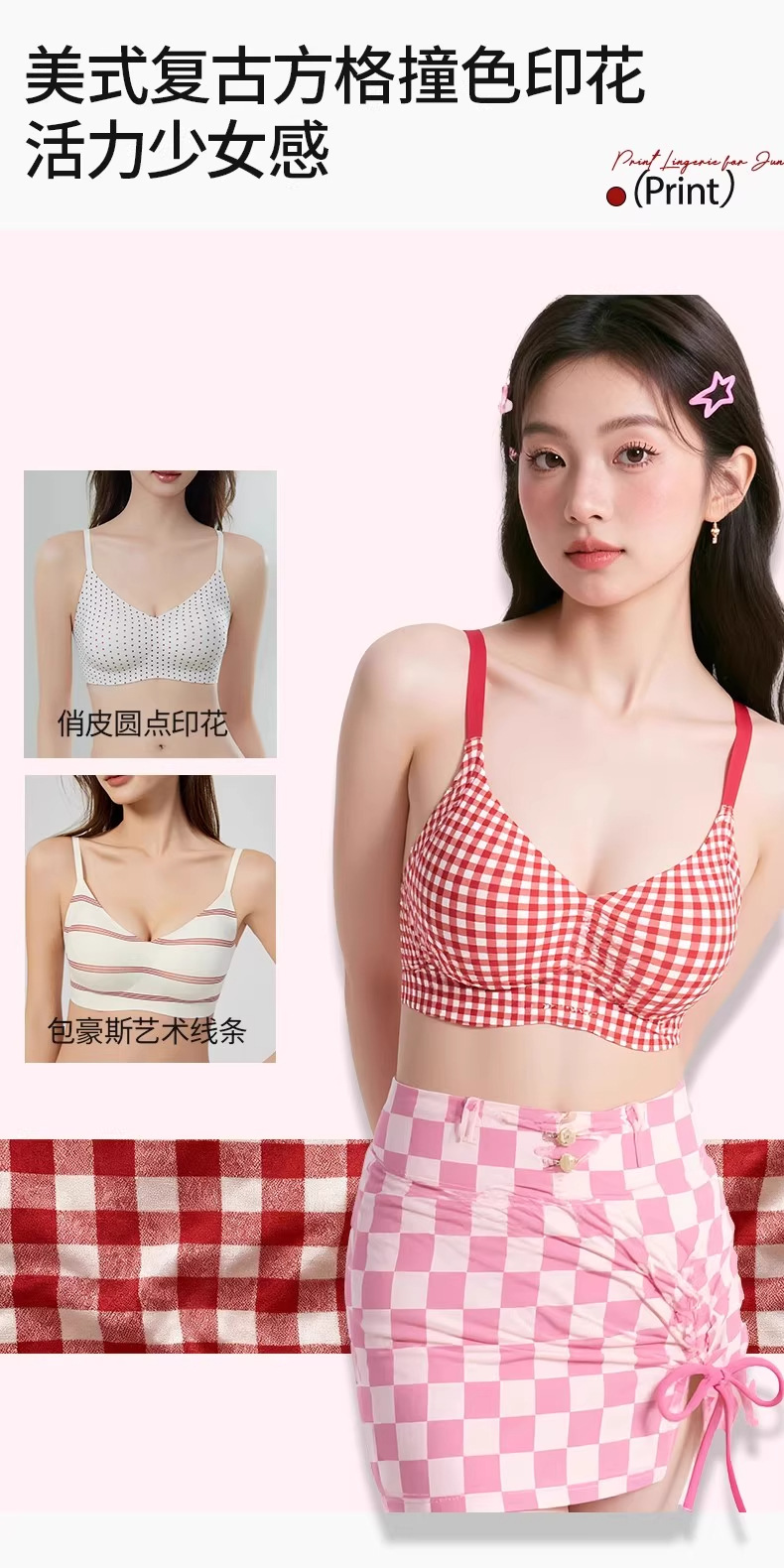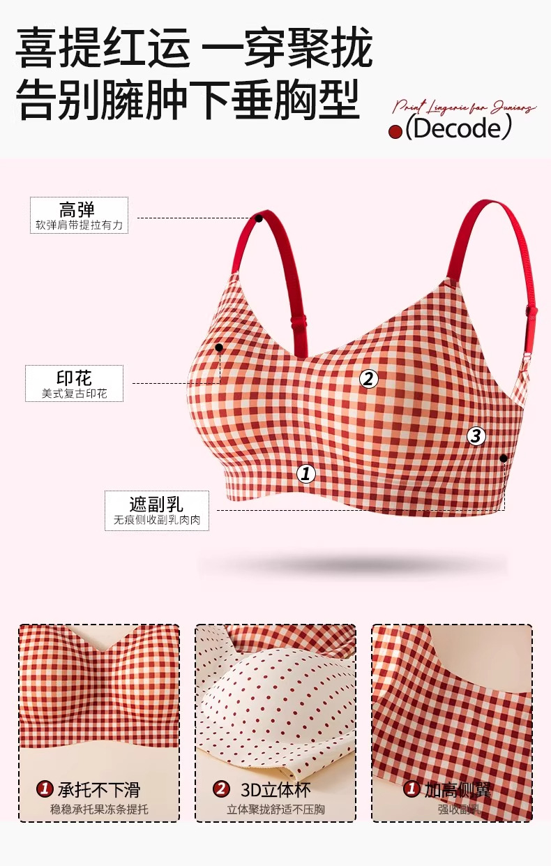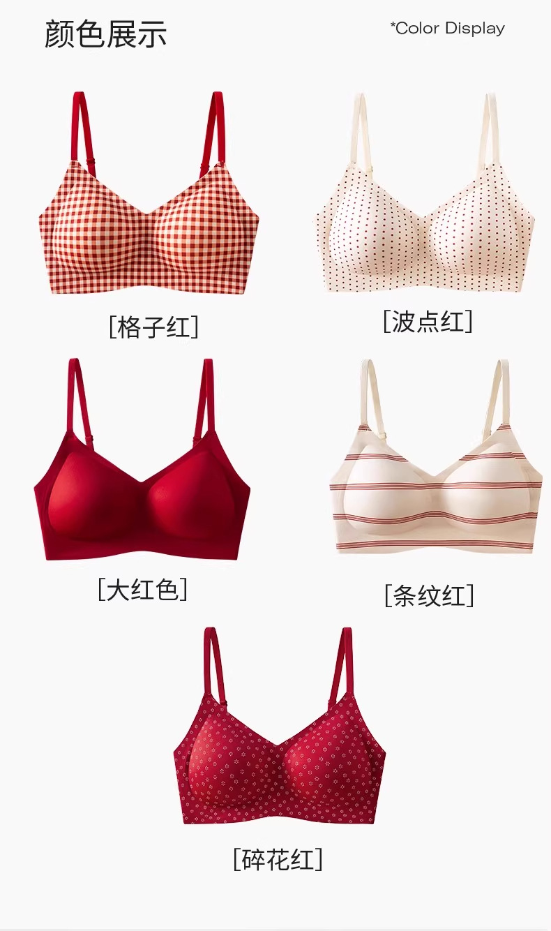 Новогодний красный полосатый цветочный лифчик для девочек, противосогнущий, дышащее и комфортное нижнее белье