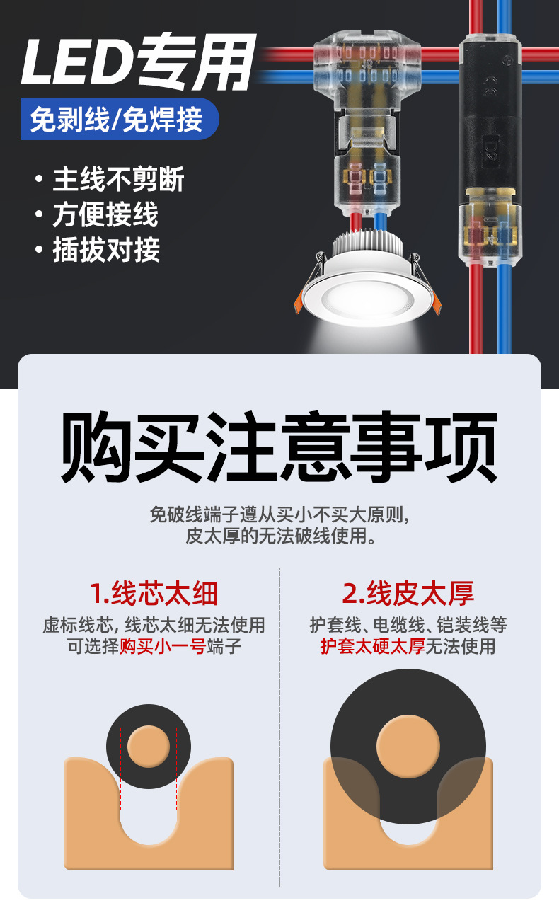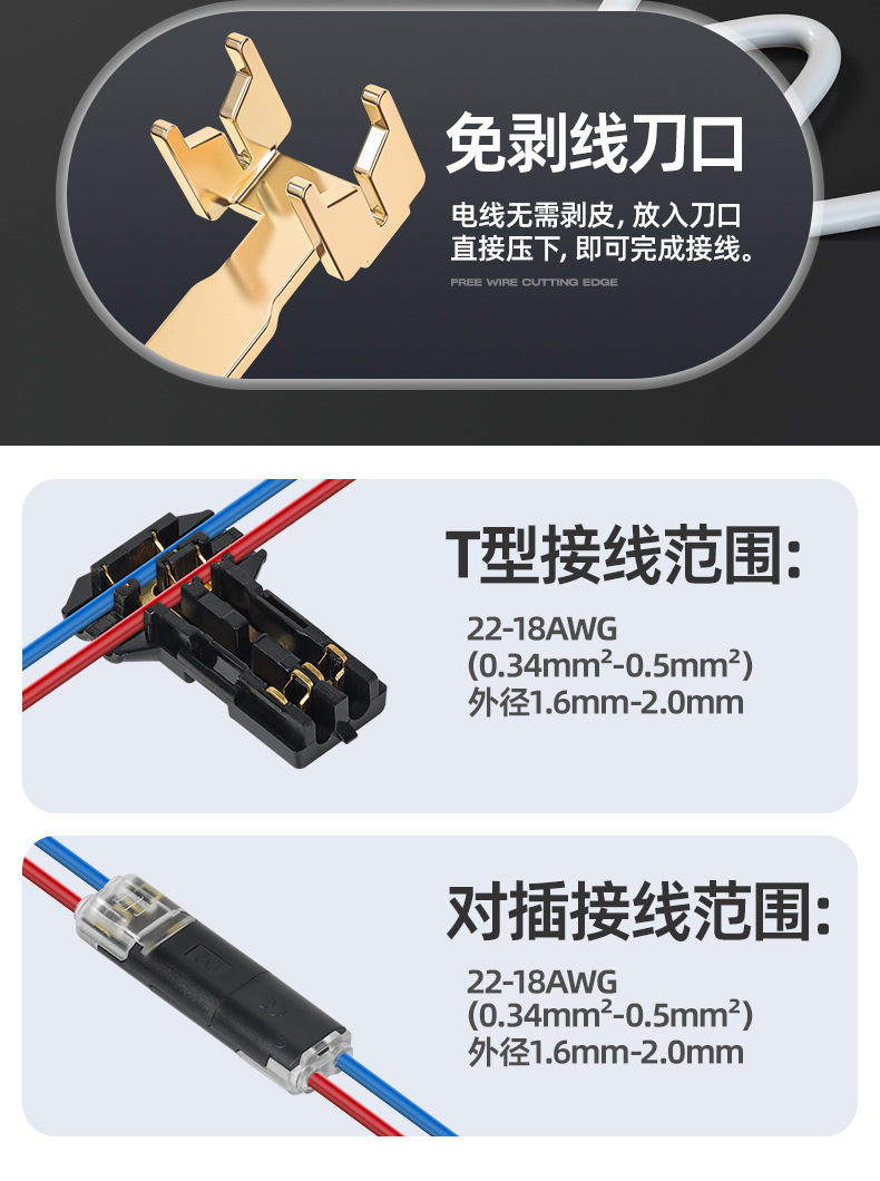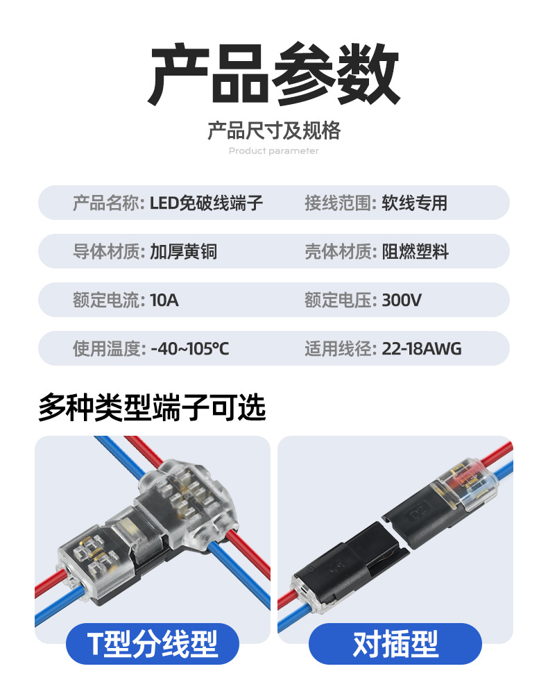 Быстрый терминал T-тип безразрывный светодиодный соединитель без пайки для прокола параллельного провода без снятия изоляции сплиттер