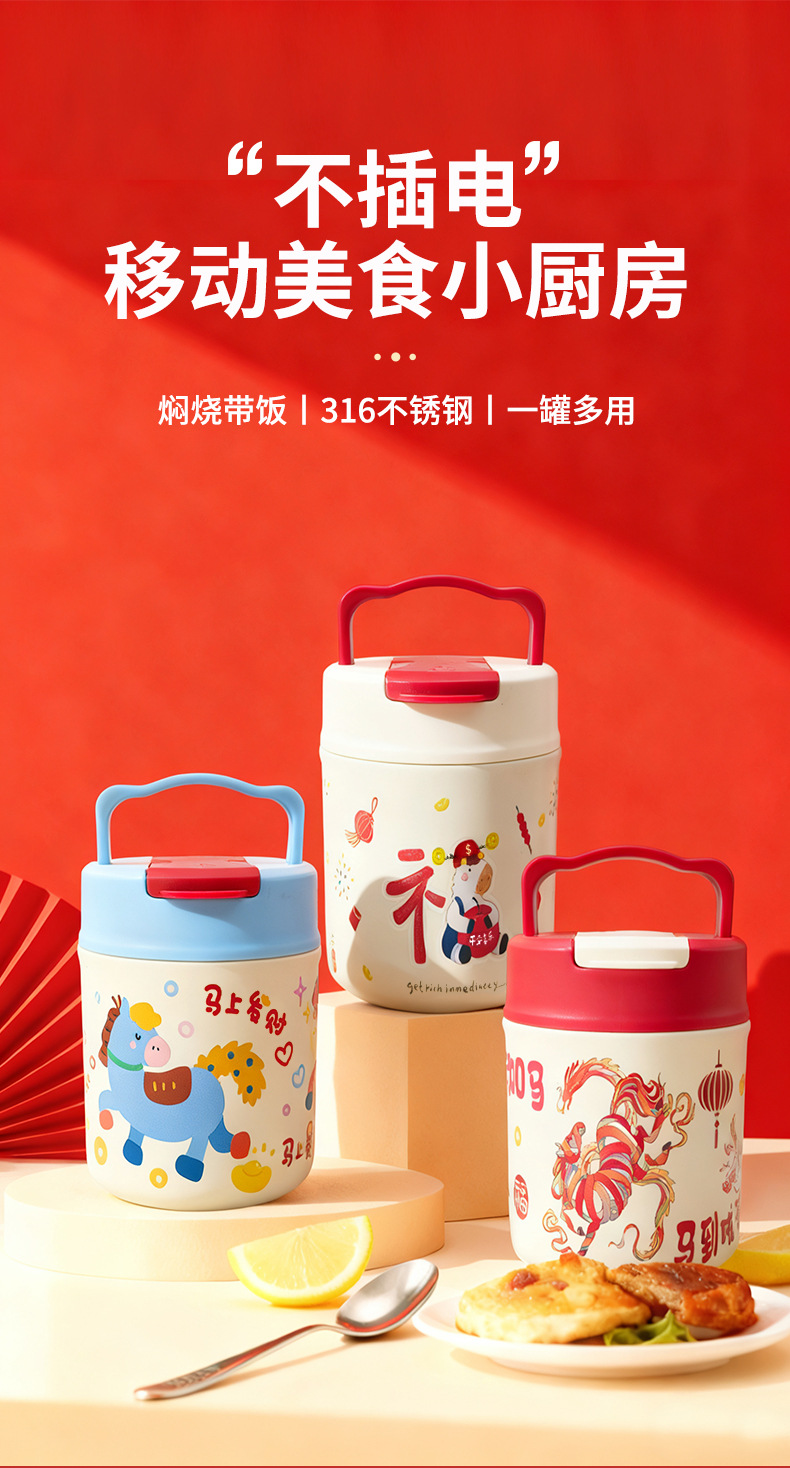 Кружка для тушения, год Лошади, новая, портативный термос, нержавеющая сталь 316, простой термос