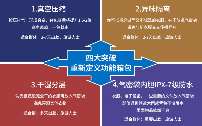 Функция Breathable, waterproof, wear-resistant, anti-theft, shock-resistant, capacity expansion, load reduction, anti-cut, dry and wet separation
