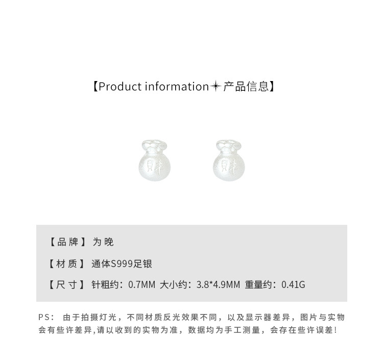 ![]() | S999 pure silver silver bag earrings | ¥20.3 / ≈ 245 ₽ | 5 | 6148789522259 |