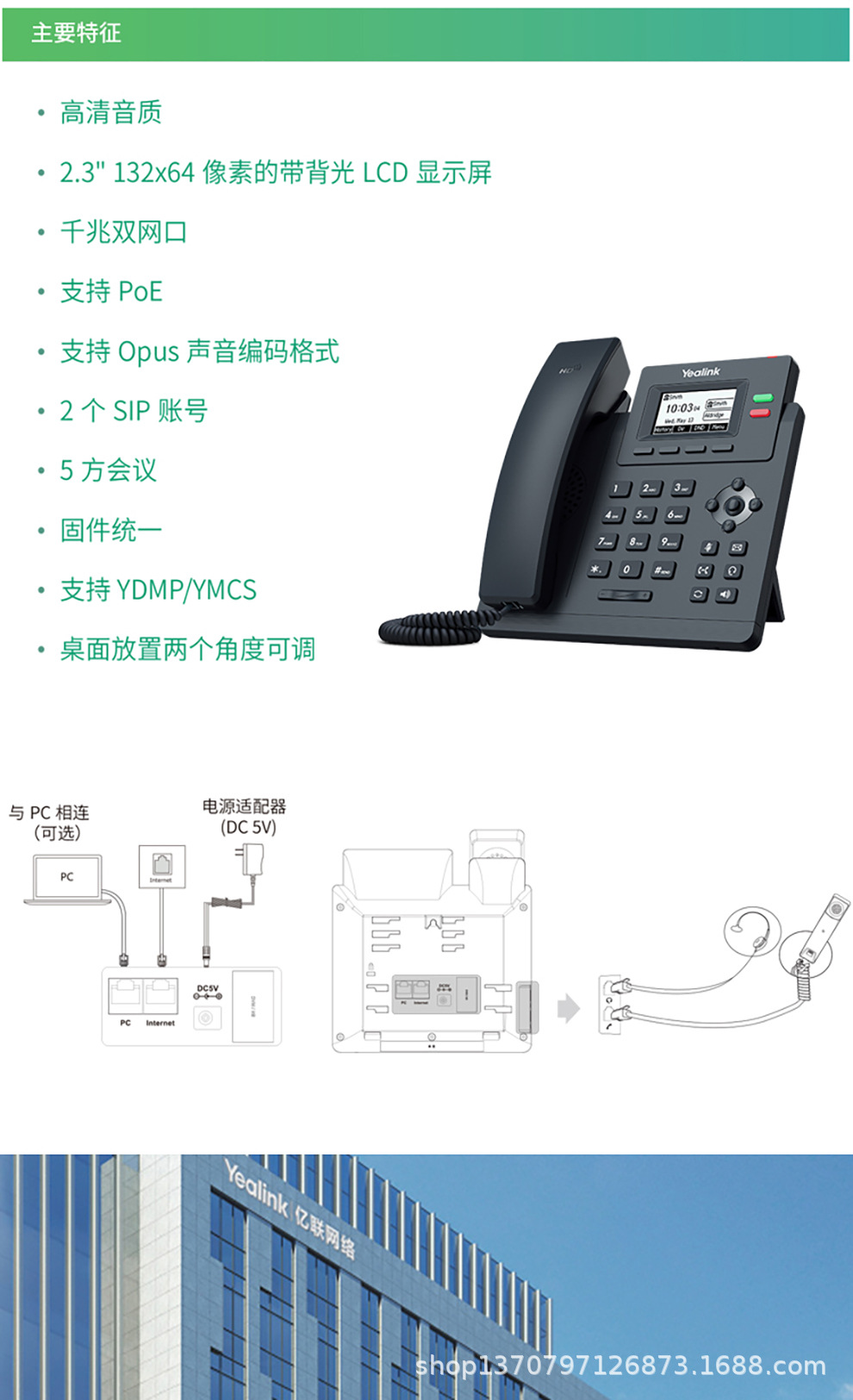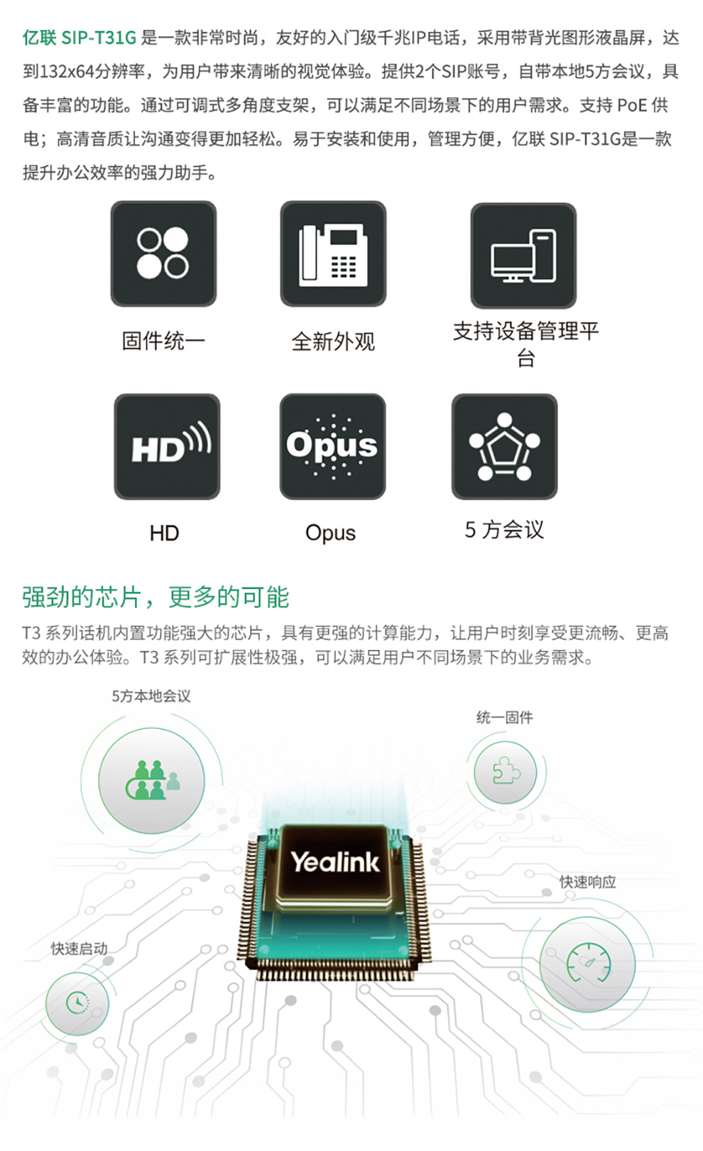 Yealink T31 SIP сетевой телефон для бизнеса офисный стационарный HD звук