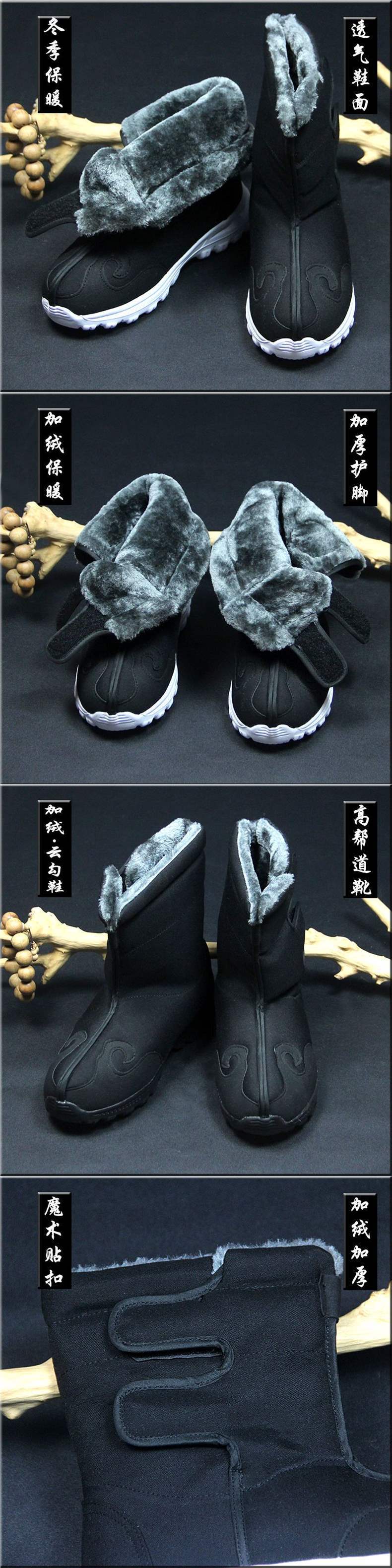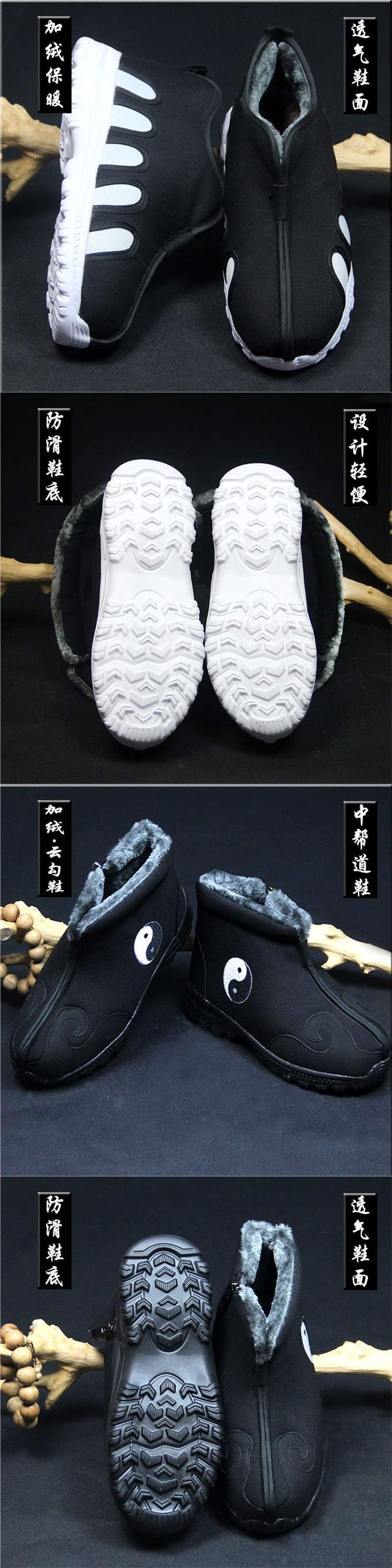 Тaoистские теплые обувь с крючком, обувь десяти направлений, зимние таоистские туфли, с флисовой подкладкой, утолщенные, нескользящие таоистские обувь, китайские стильные хлопковые туфли