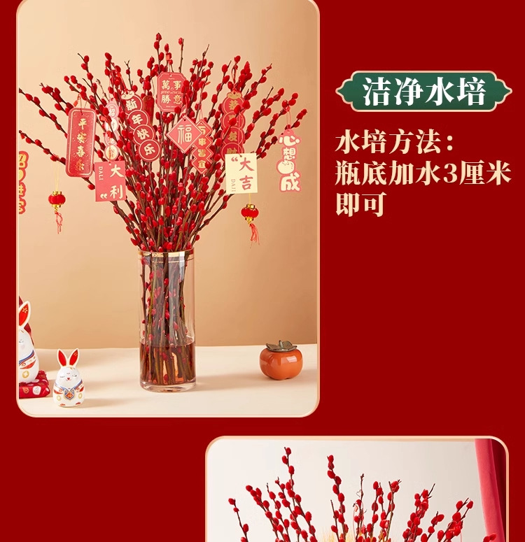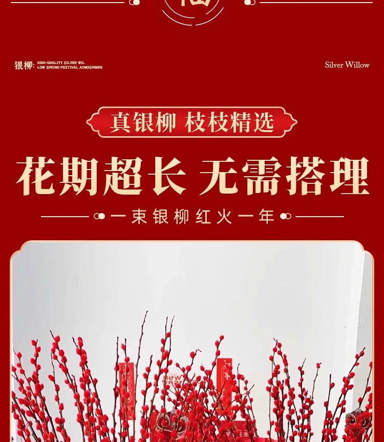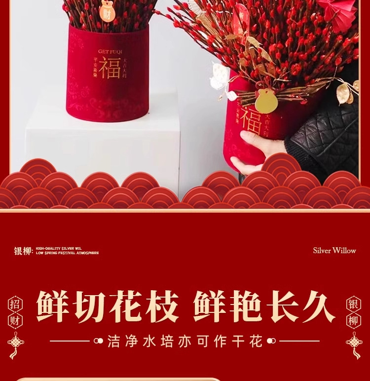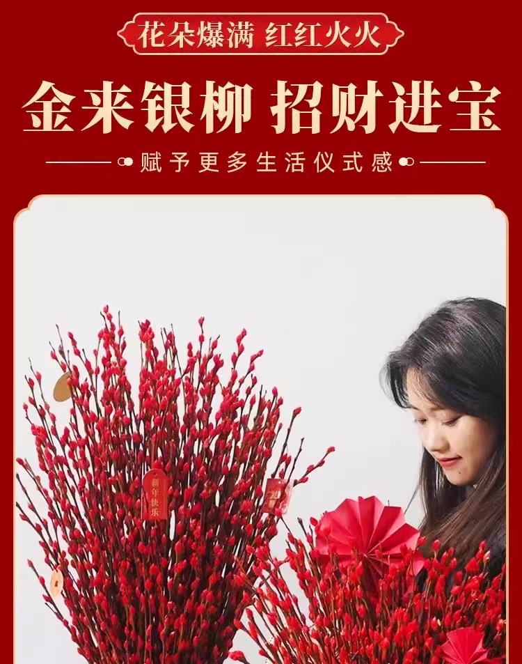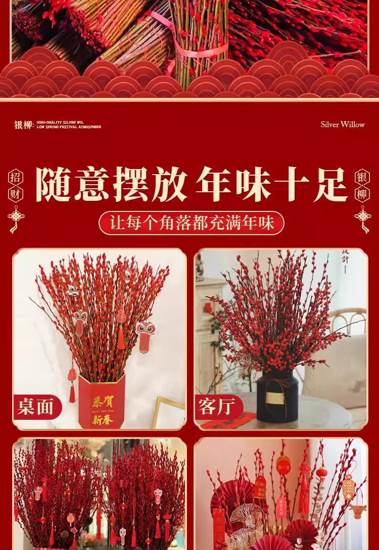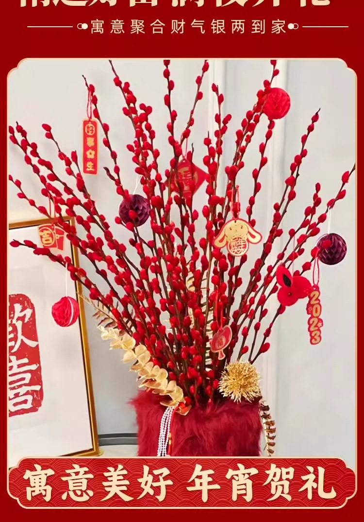 Прямые продажи с завода, дропшиппинг для весеннего фестиваля, новогодние цветы, гидропонные растения, свежие ветви, сухие цветы, декор для гостиной в красном, серебряная ива