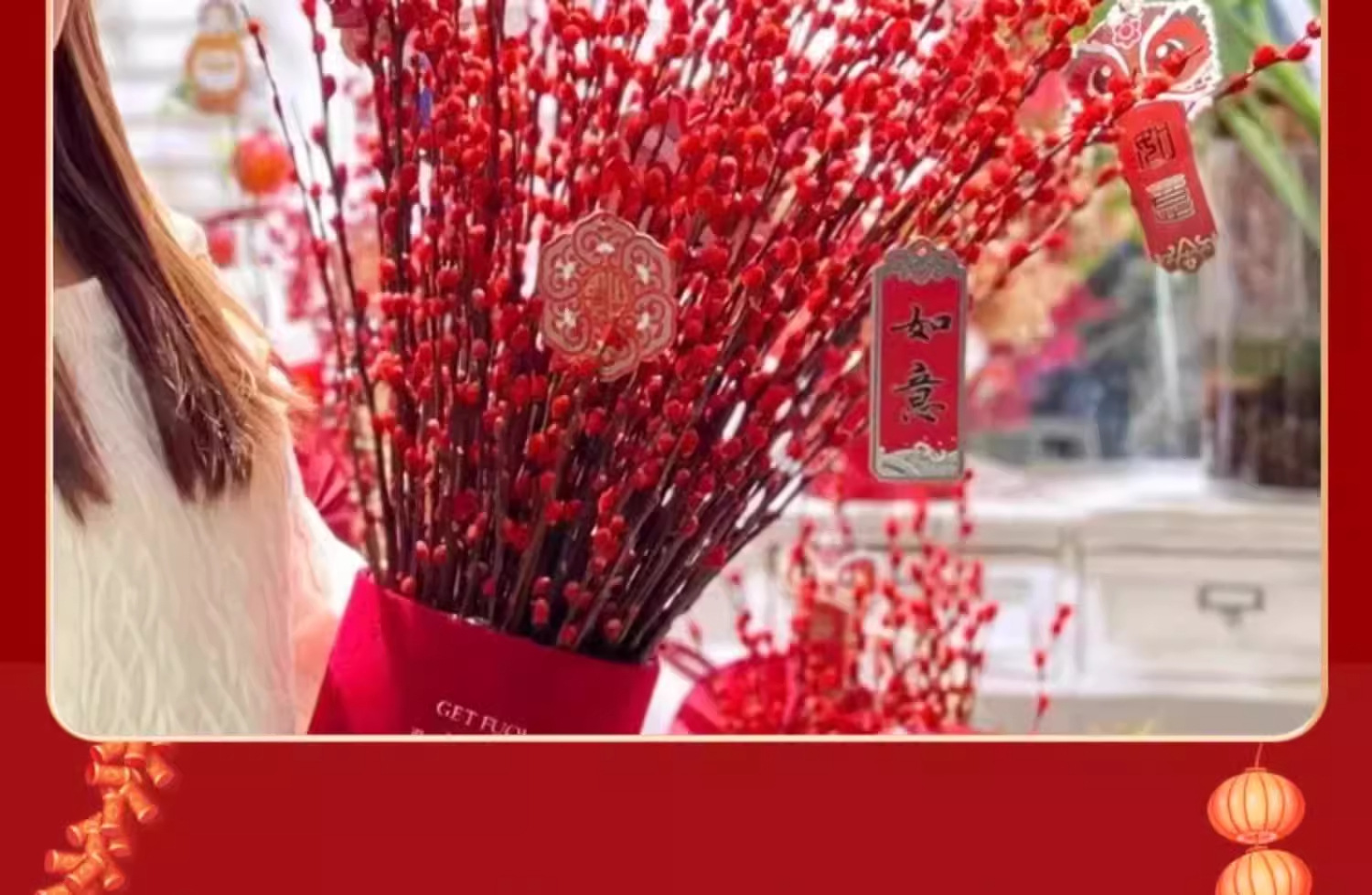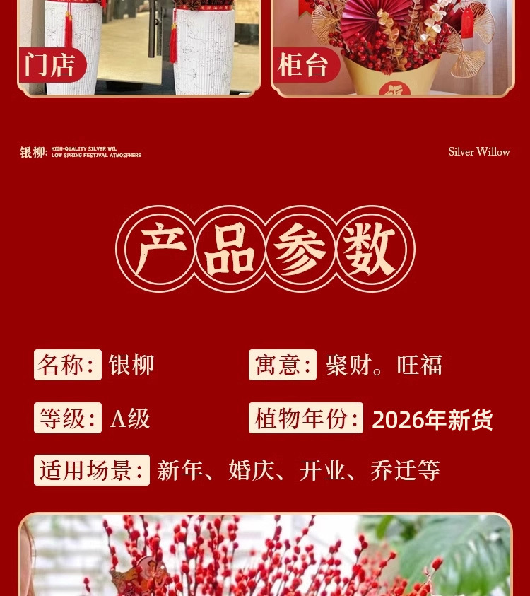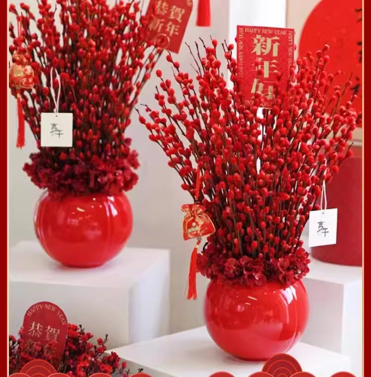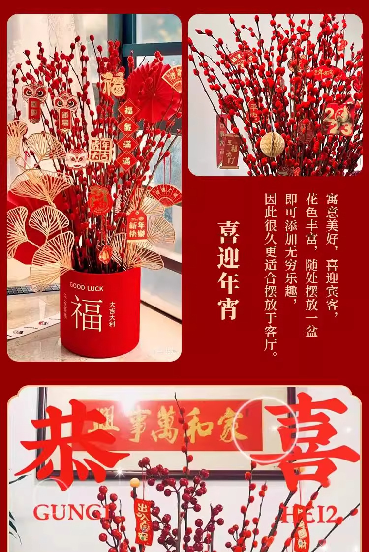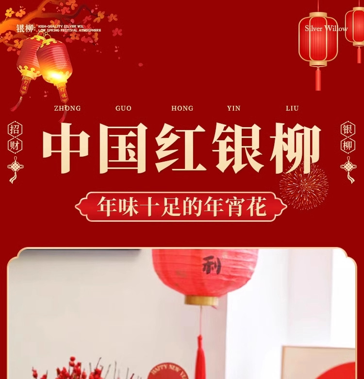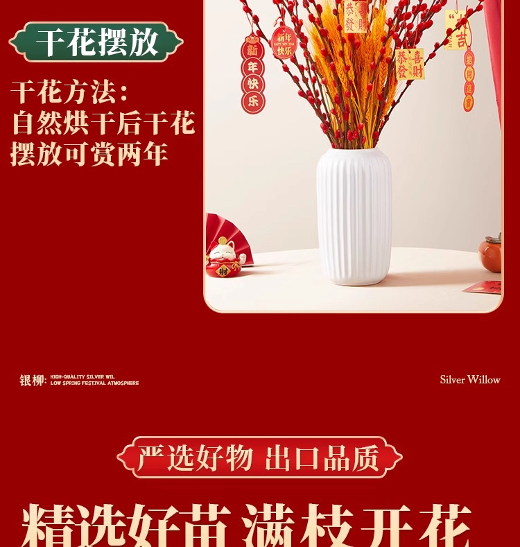 Прямые продажи с завода, дропшиппинг для весеннего фестиваля, новогодние цветы, гидропонные растения, свежие ветви, сухие цветы, декор для гостиной в красном, серебряная ива