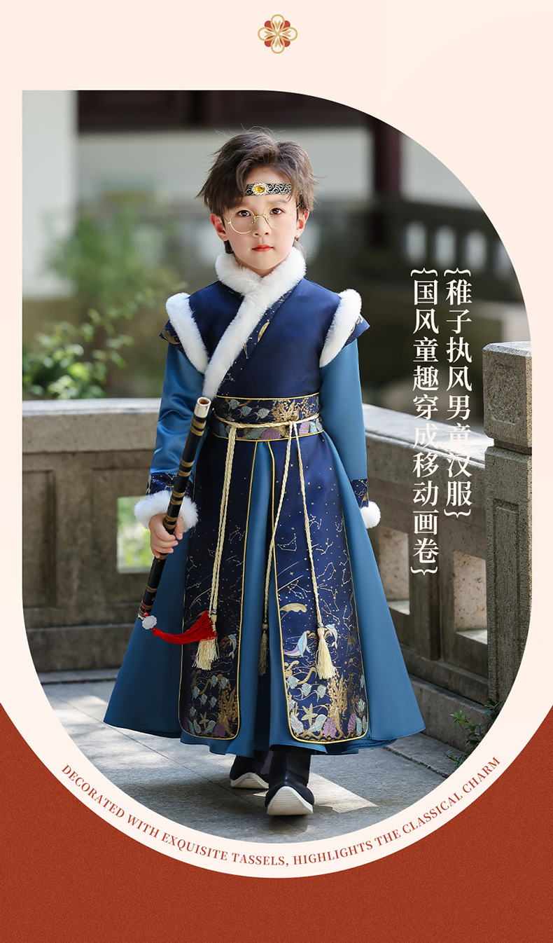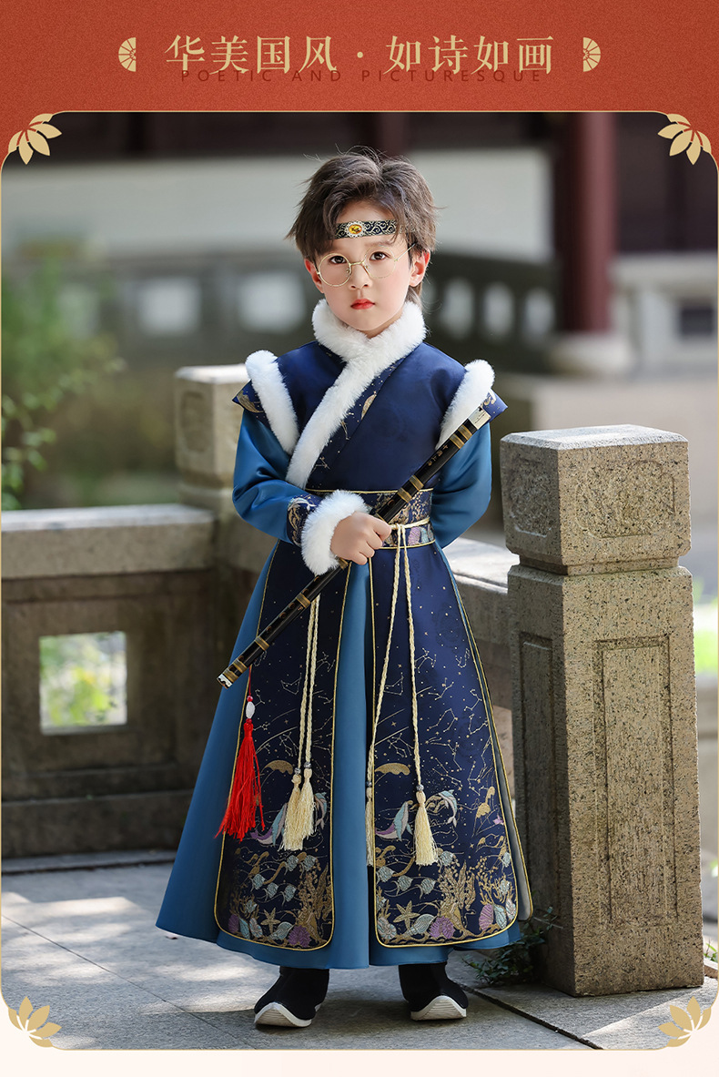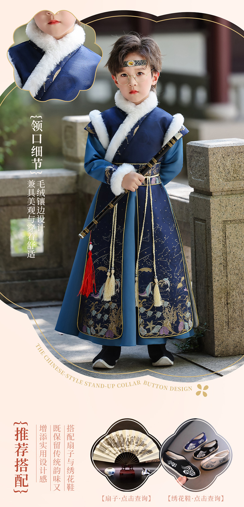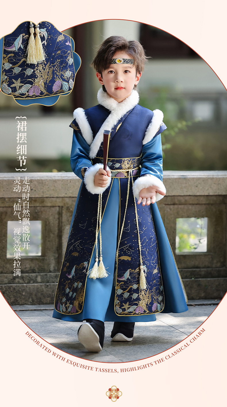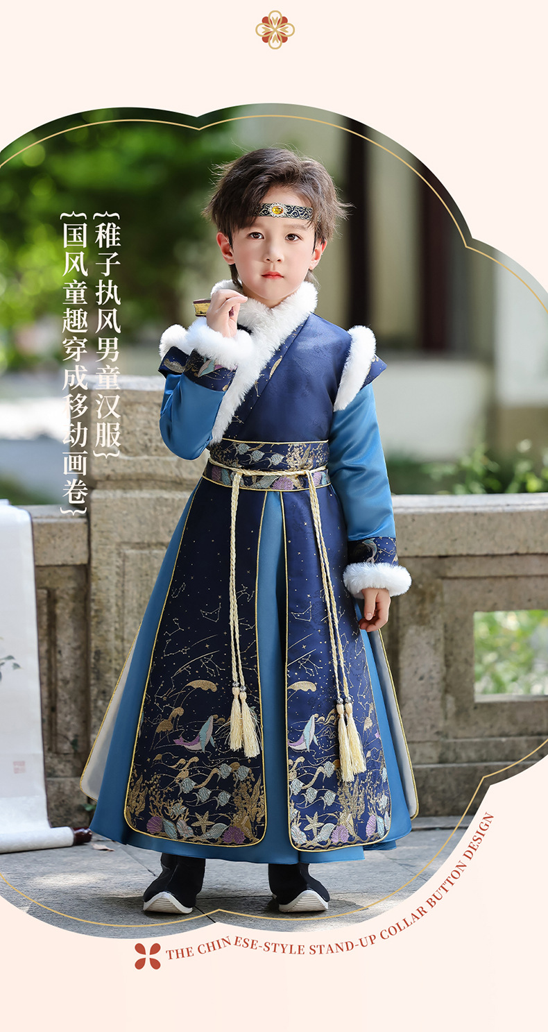 Детский осенне-зимний костюм танг для мальчиков, ханфу на Новый год, зимняя китайская древняя одежда