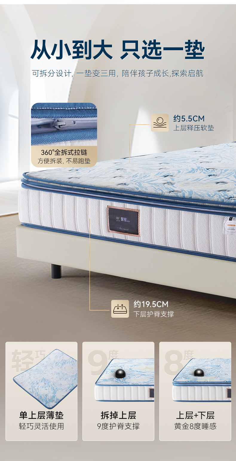 Матрас Jinkoer One-Pad три в одном, семизонный, латексный, независимый, с защитой позвоночника, антибактериальный и анти-клещевой, для детей Pilot