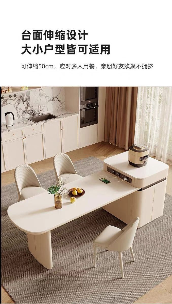 Обеденный стол островного стиля, современный, выдвижной, простой, плитка, для маленькой квартиры, кремовый, многофункциональный, комбинация для дома