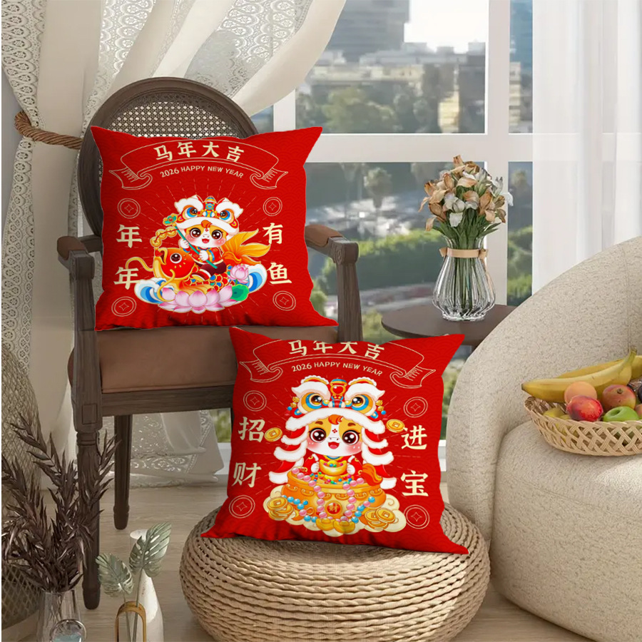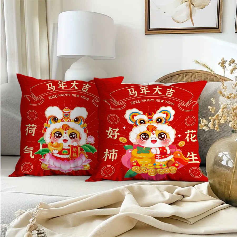 Подушка к Новому году 2026, год Лошади, красная зодиакальная подушка, праздничный декор для дома, прикроватная подушка, настраиваемая с изображениями