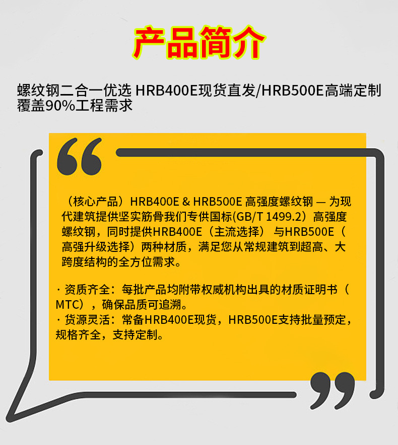 Экспорт арматуры от производителя, арматура национального стандарта Hrb400/500E, арматура высокой прочности для инженерного экспорта