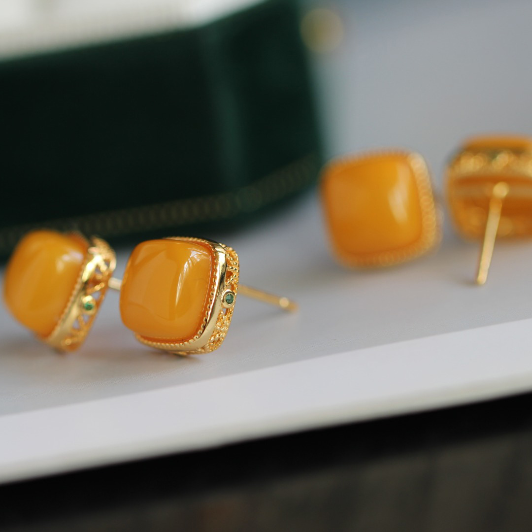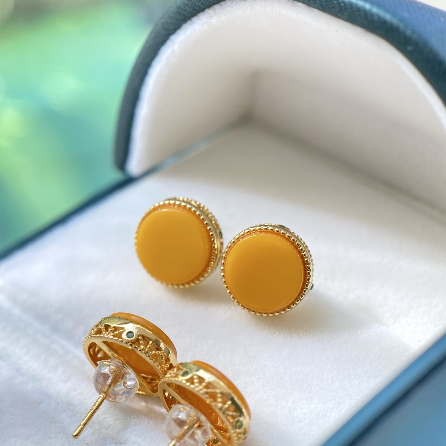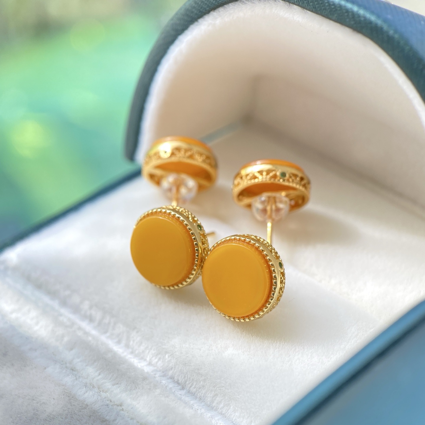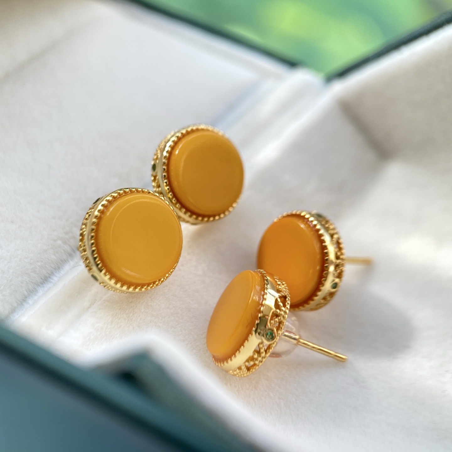 Название продукта Natural chicken fat yellow beeswax round earrings