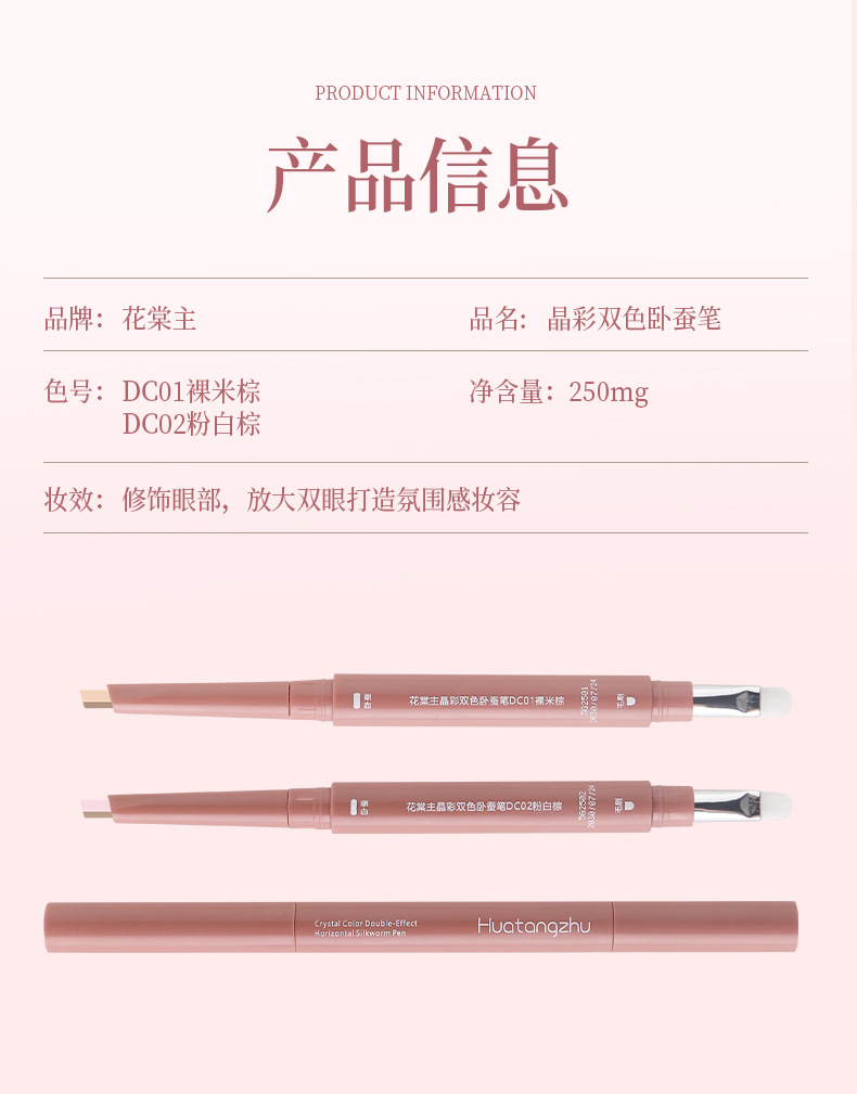 Название продукта Huatang main crystal color two-color lying silkworm pen
