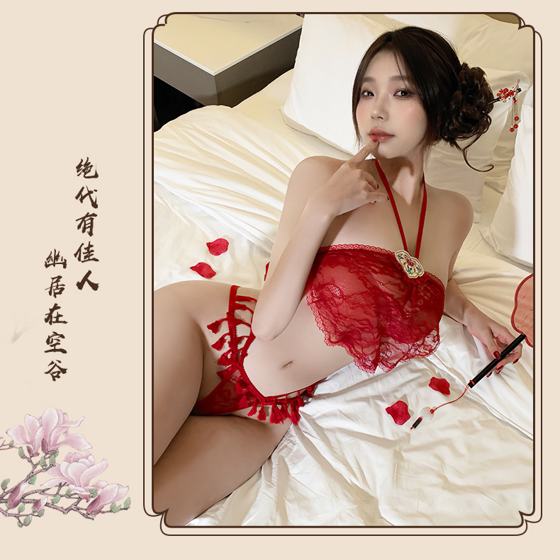 Fan Lei сексуальный вышитый пояс комплект три точки флирта прозрачный открытые груди соблазнительное кружевное сексуальное белье 1023
