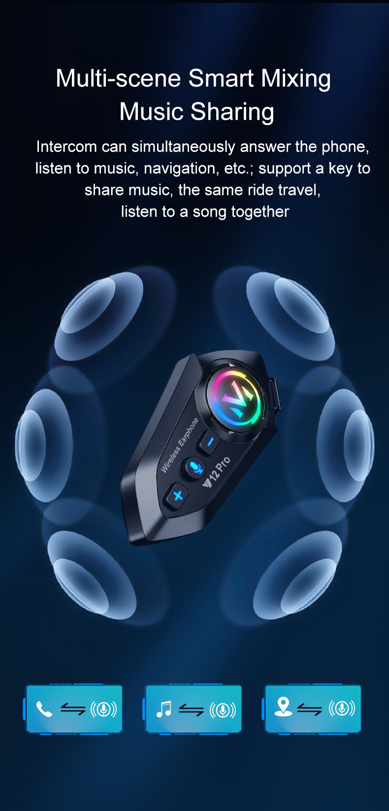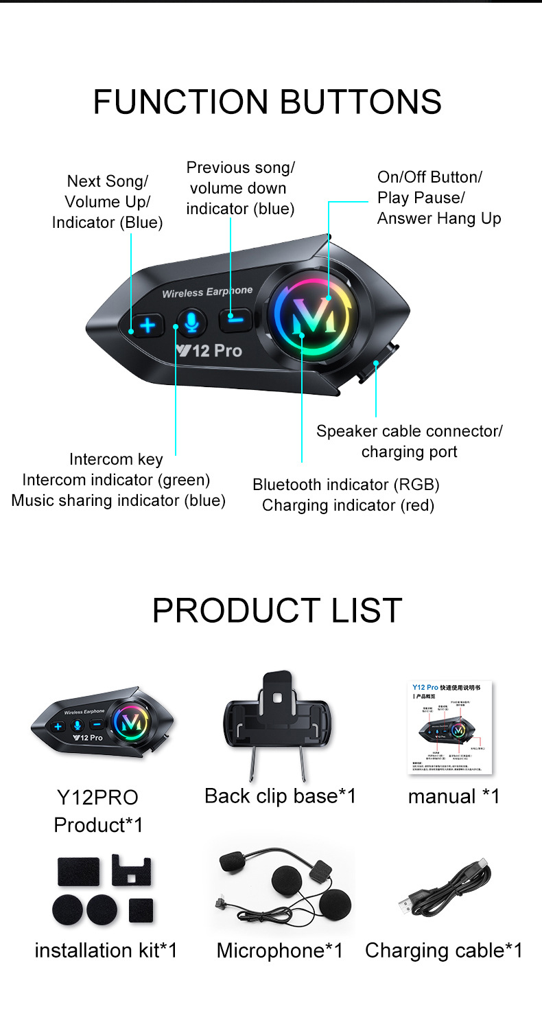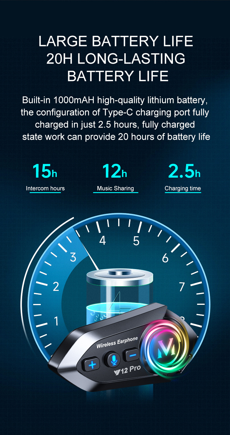 Мотоциклетный шлем Y12Pro с Bluetooth гарнитурой, межконтинентальный, шумоподавление, длительное время работы от батареи, водонепроницаемый, для смешанных поездок
