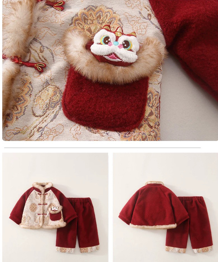 Зимний комплект для мальчиков с флисовой подкладкой, новогодний наряд 2026, новый утепленный китайский костюм тан, комплект из двух предметов для детей и младенцев