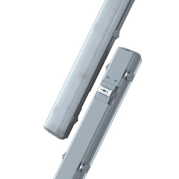 色温可调的LED一体化支架灯,防尘、防水、抗UV,工业照明线条三防灯,乳白灯罩透光率86%,通过SAA/CE/C-Tick认证的卡扣式三防支架灯