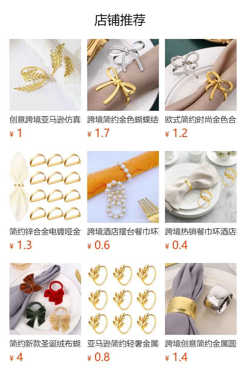 ![]() | Gold beaded napkin ring | ¥2.8 / ≈ 34 ₽ | 9999748 | 5980568933117 | |