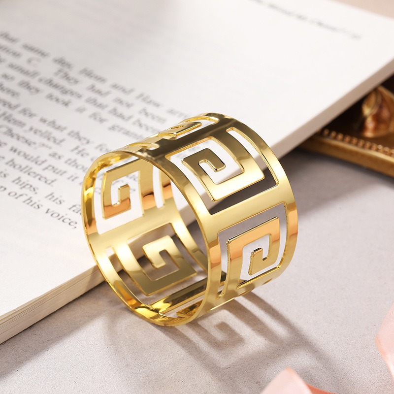 Кросс-бордерные креативные легкие люксовые полые металлические кольца для салфеток для декора столов в отелях и ресторанах оптом