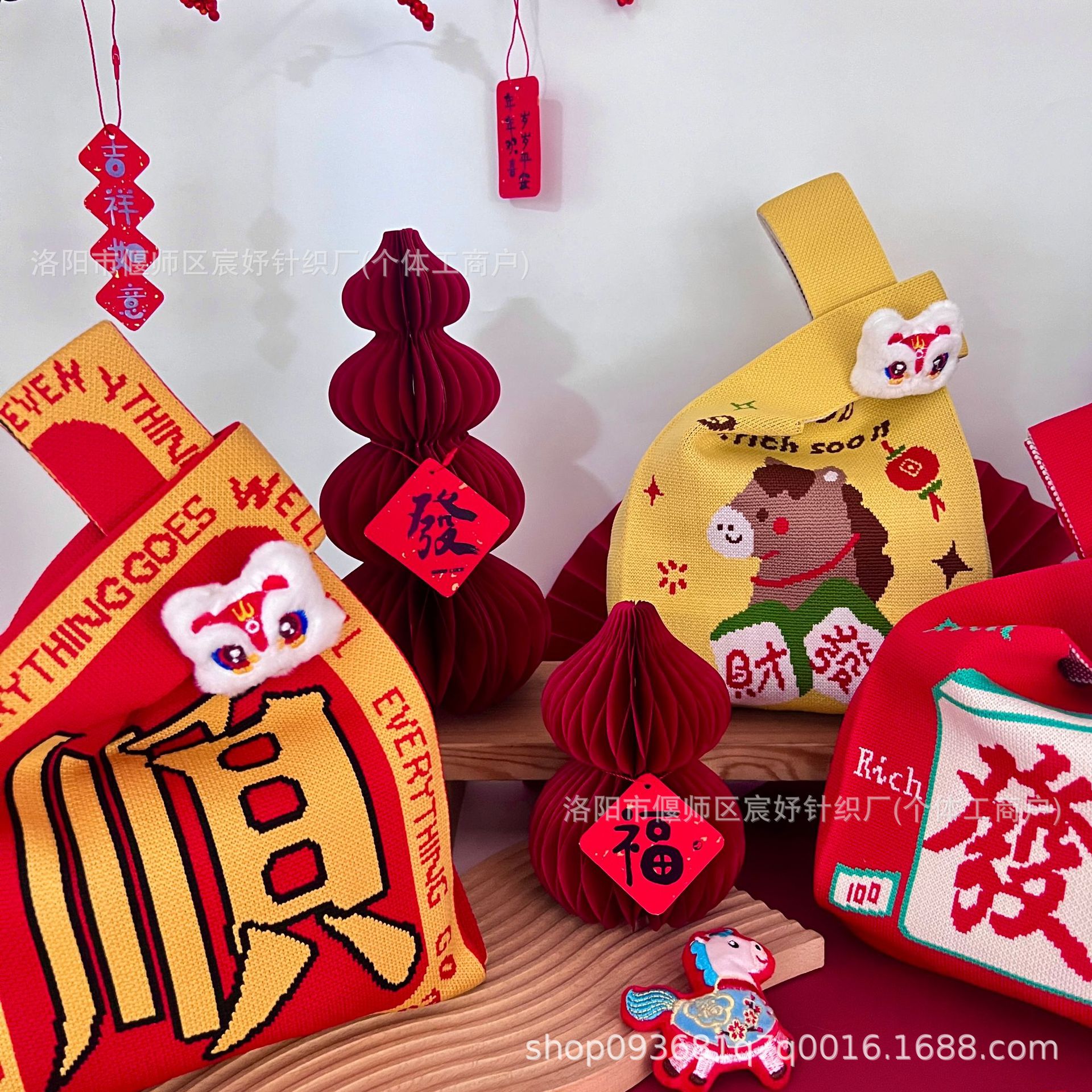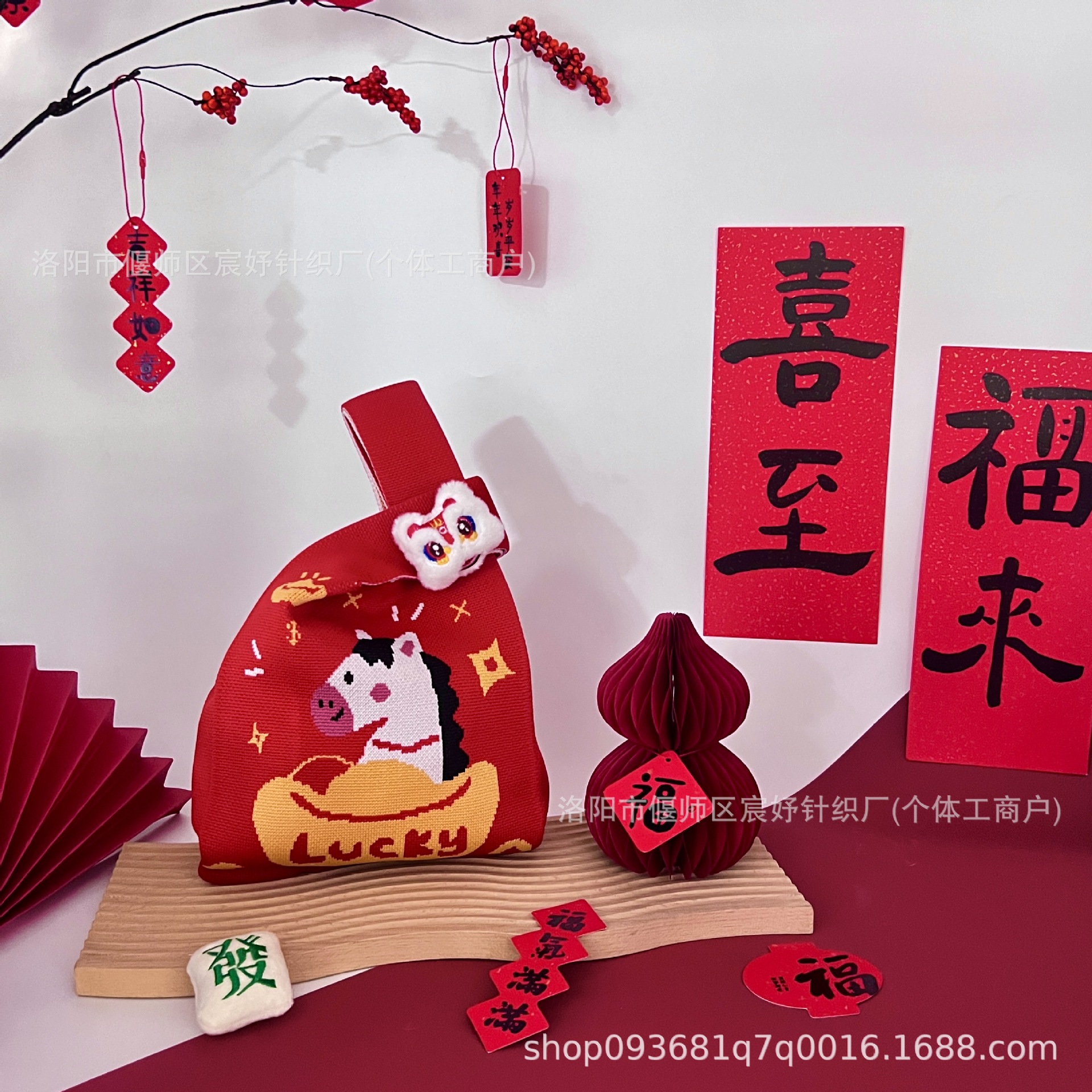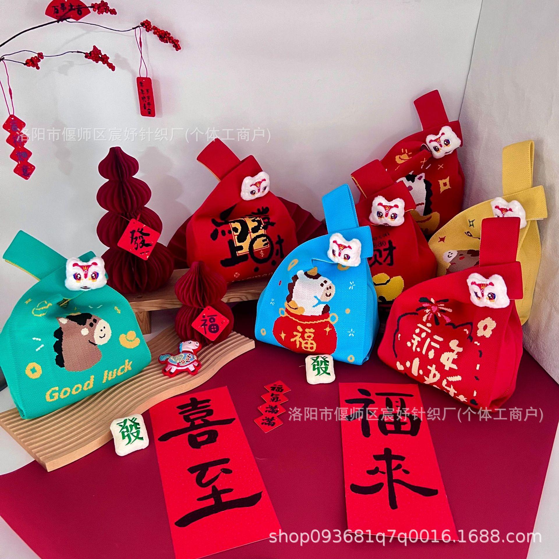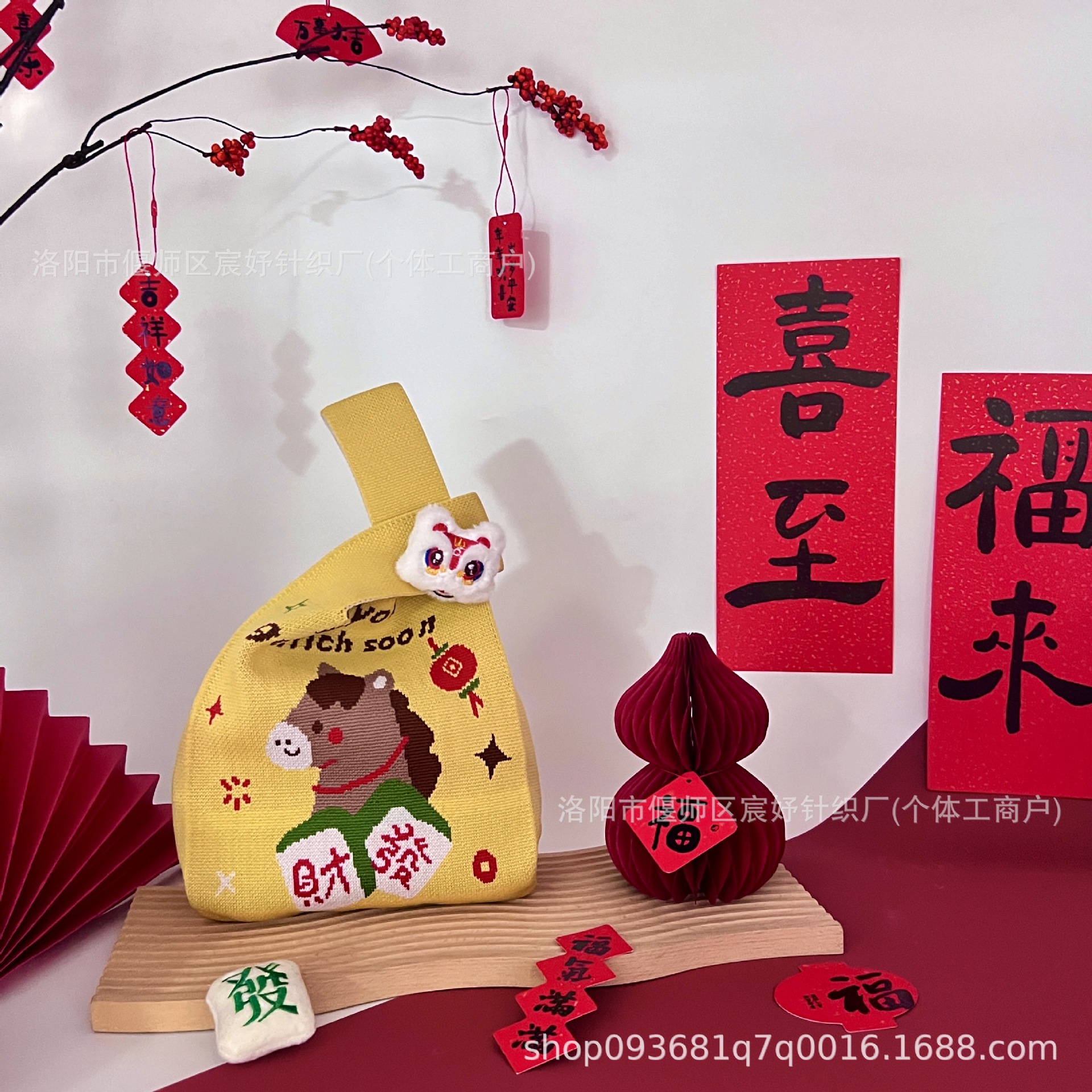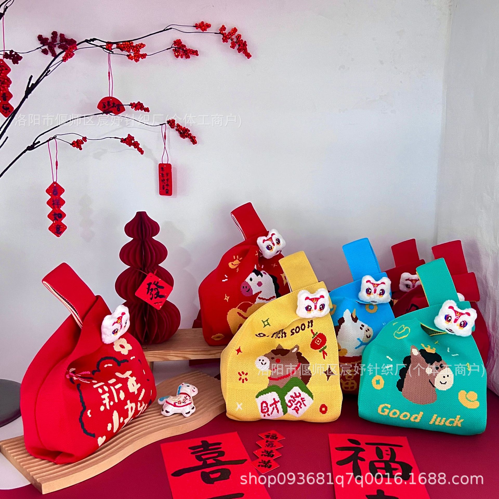 2026 Год Лошади, новая праздничная вязаная сумка, портативная сумка через плечо, оригинальный подарочный мешок для женщин