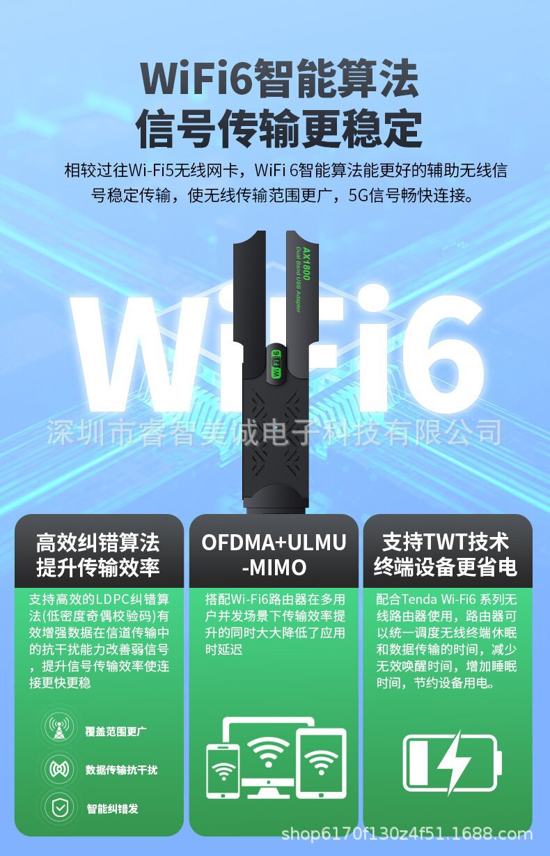 Беспроводная сетевая карта USB 1800Mbps гигабитная Wifi6 для настольного компьютера и ноутбука киберспорт двухдиапазонный без драйвера