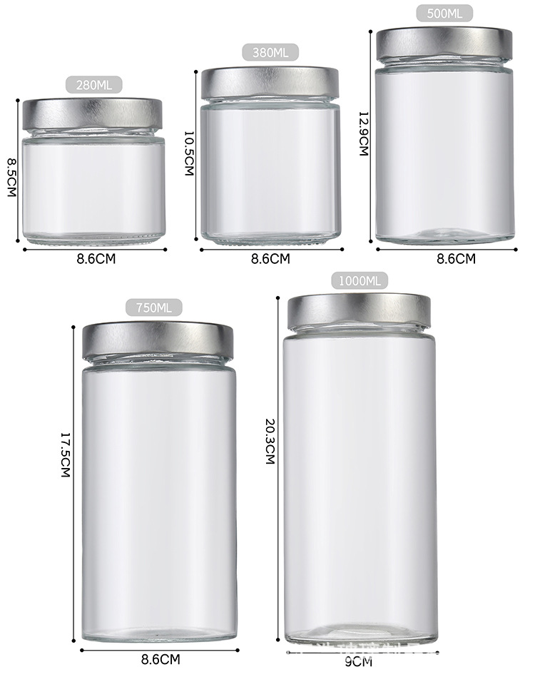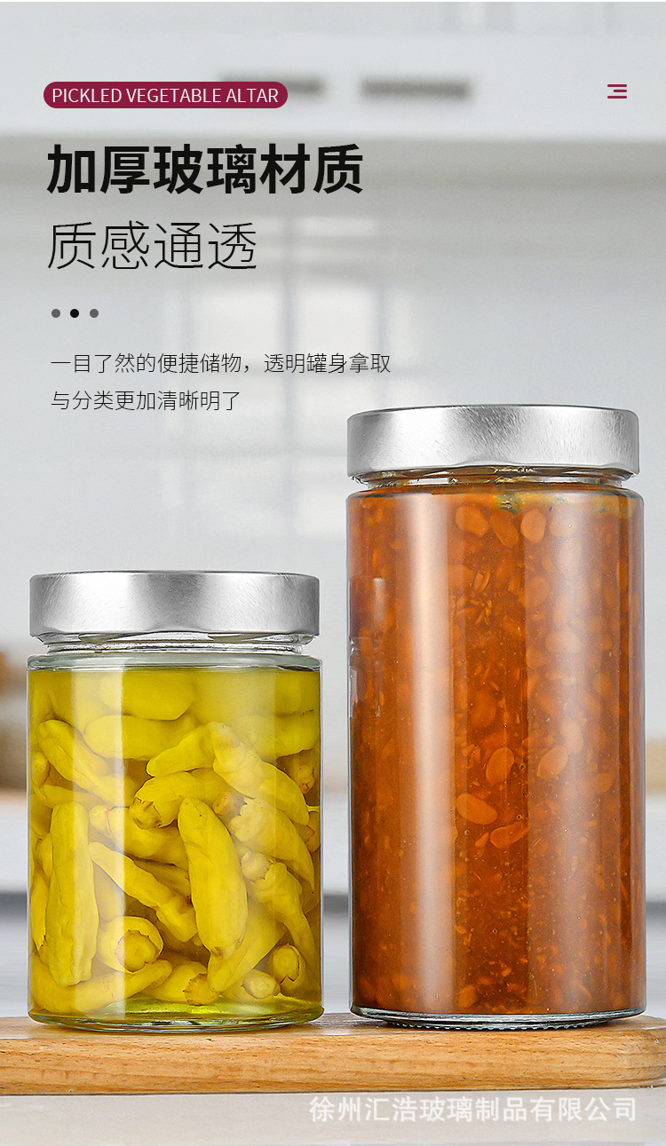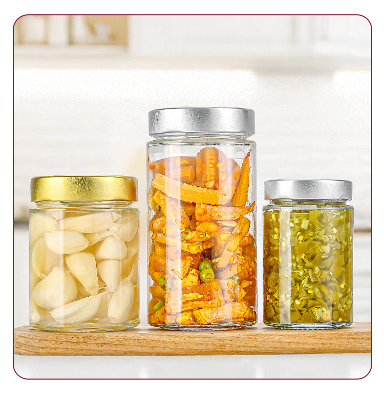 Оптовая продажа высоких герметичных стеклянных банок для домашних условий, прозрачные банки для варенья, соуса чили, соуса кунжута, меда