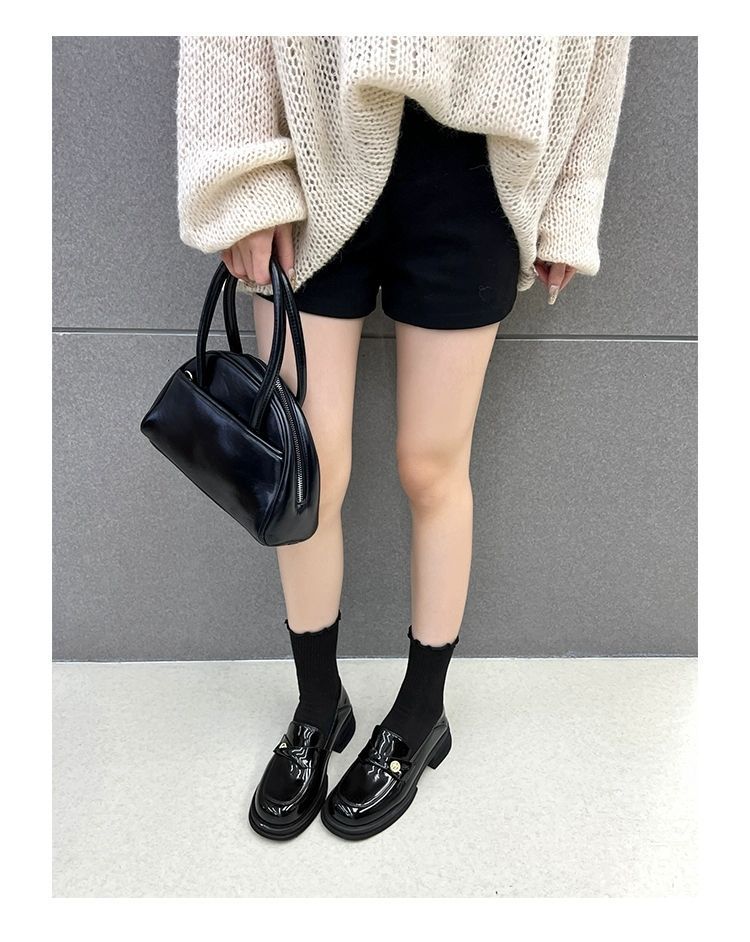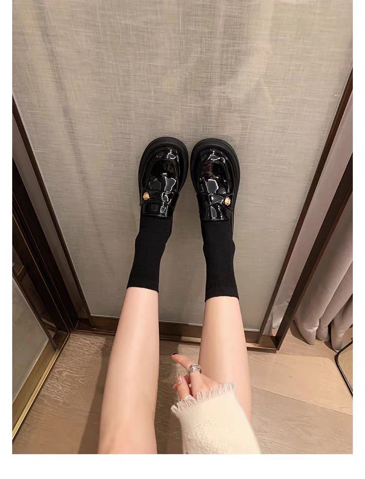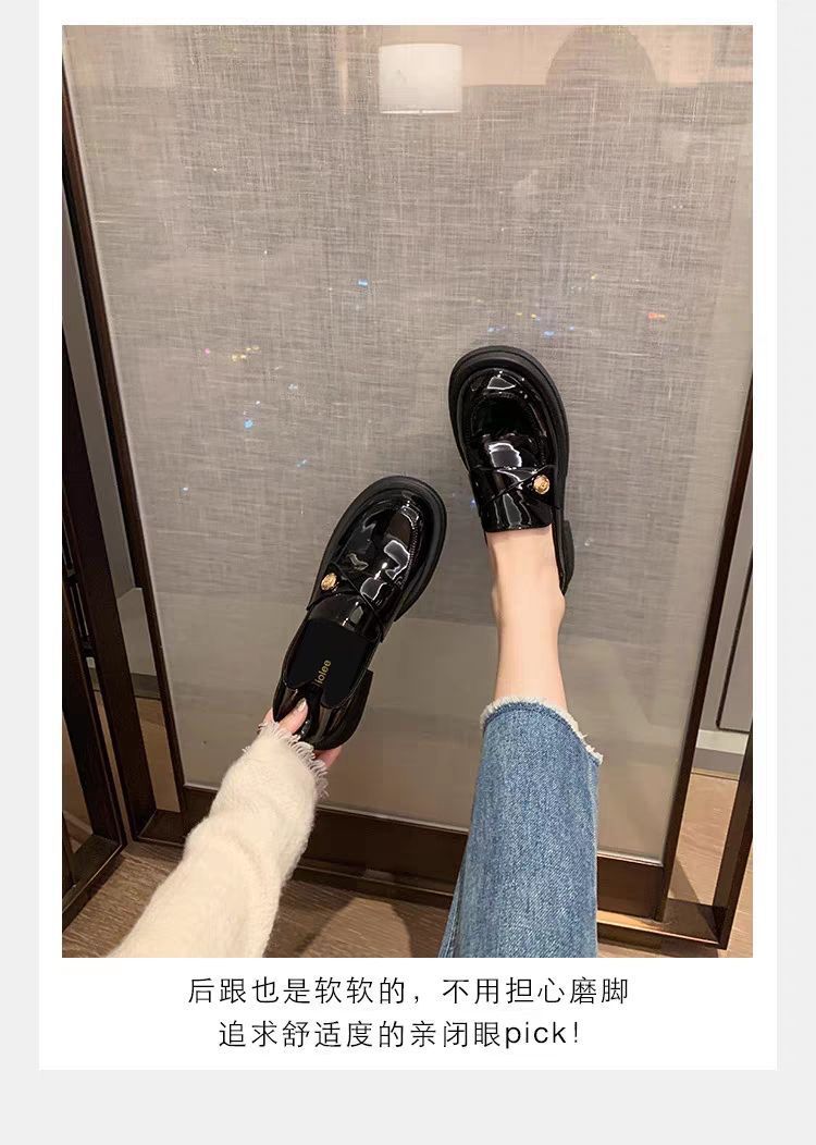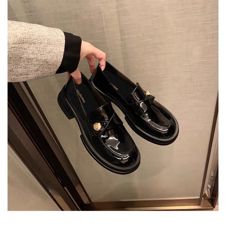Модные универсальные блестящие кожаные лоферы 2025 нового корейского стиля элегантные средние толстые каблуки круглые носки толстосоледные женские туфли