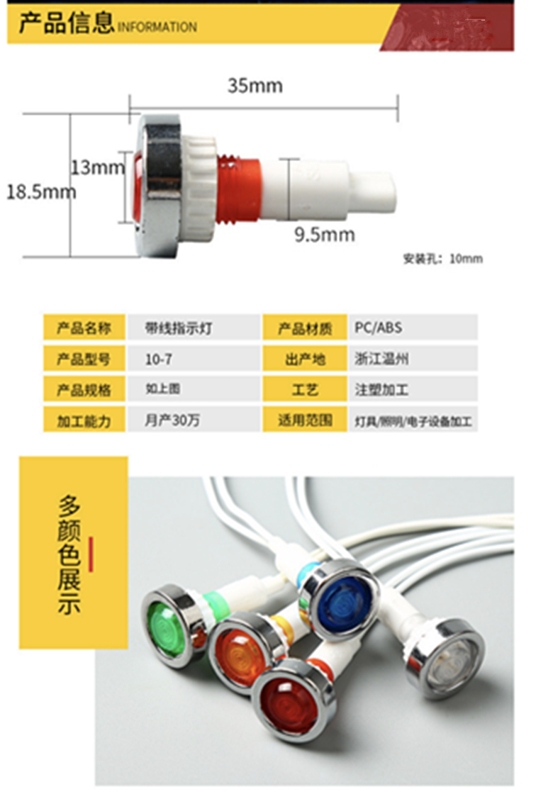Электроплакированное кольцо с проводом 10mm индикатор для пароварки холодильника водонагревателя 220V красный