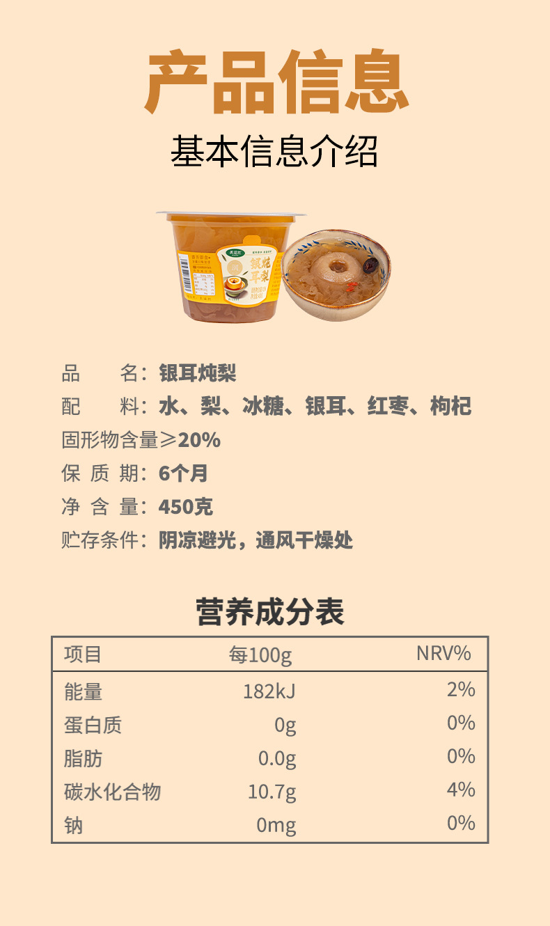 Кулинарная кухня, специализирующаяся на тушеном белом грибе и груше 450г, тушеная снежная груша, готовая к употреблению, консервированная целая тушеная груша