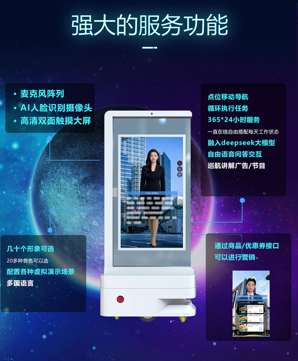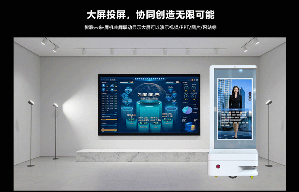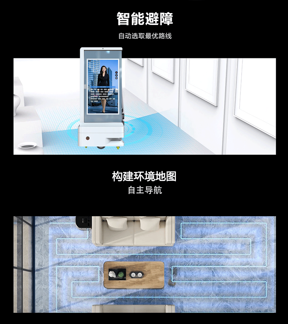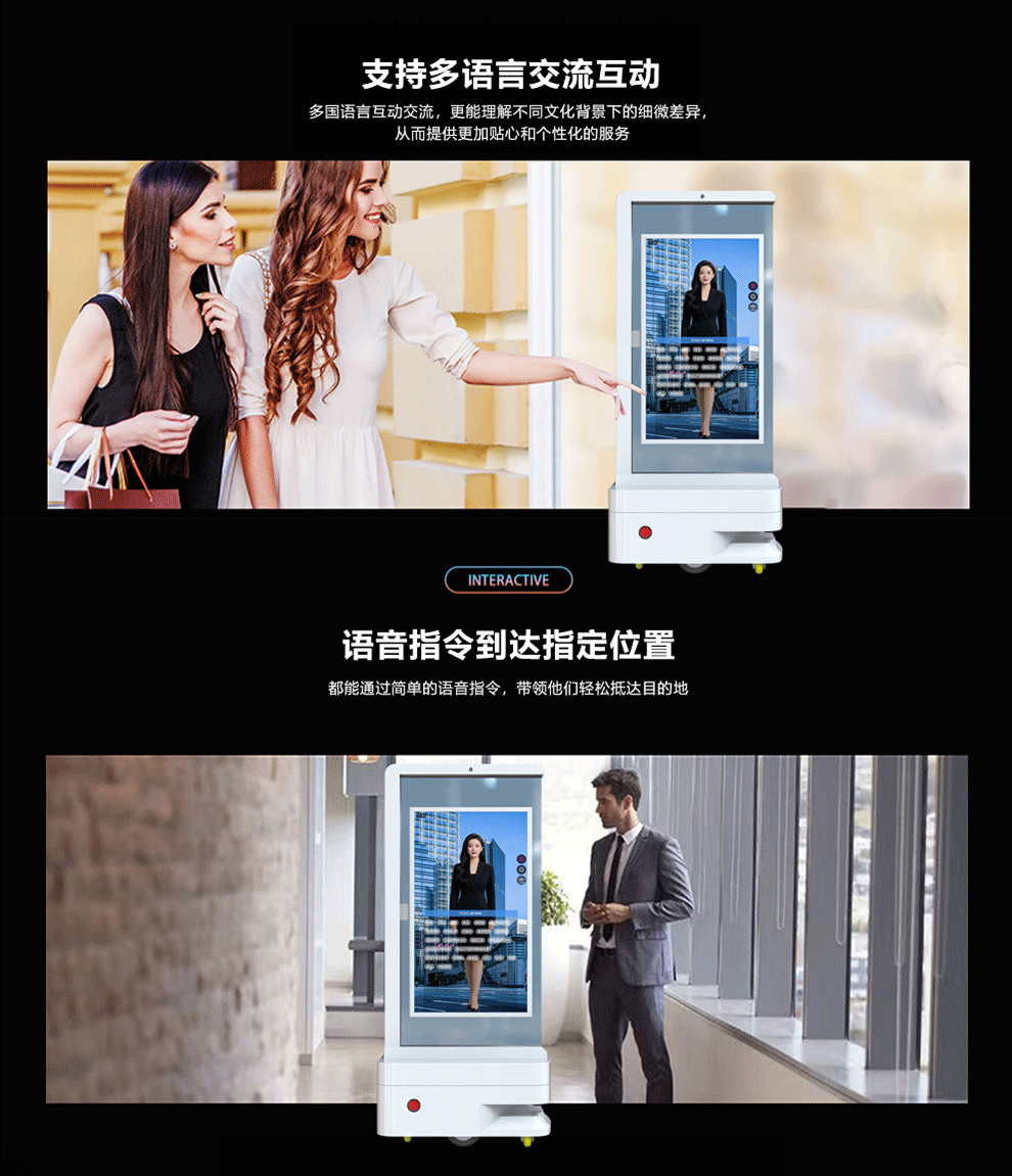 43-дюймовый двусторонний экран, мобильный Ai цифровой прозрачный OLED экран, голосовой диалог, интеллектуальное избежание препятствий