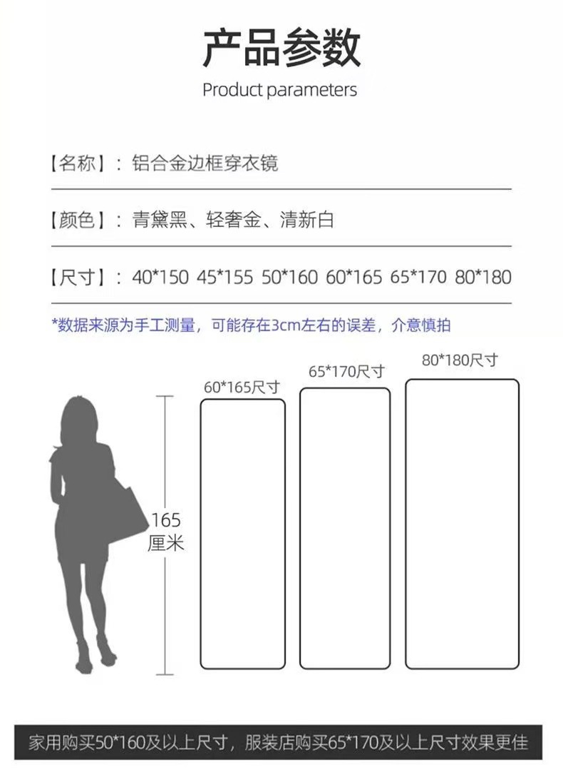 Зеркало во весь рост, напольное зеркало для переодевания, простое зеркало из алюминиевого сплава, настенное зеркало для дома или общежития