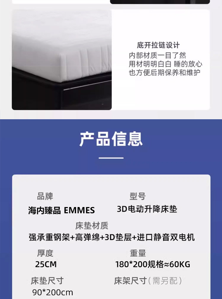 ![]() | 1500mm*2000mm | 3d electric lifting mattress (xiaobai) german dual motor, no bed frame | ¥3680.0 / ≈ 44 328 ₽ | 200 | 5984784381203 | |