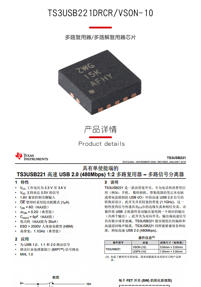 Оригинальный Ts3Usb221Drcr Vson-10 чип мультиплексора/демультиплексора